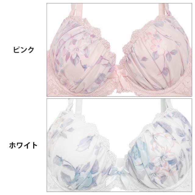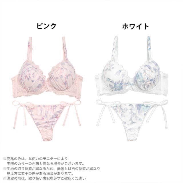 ピュアフラワープリントブラジャー&サイド紐Tバックショーツ