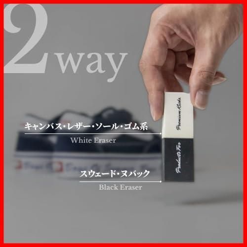 ちょっとした黒ずみや汚れ消しに便利なスニーカー専用イレイサー。 起毛素材に対応する研磨剤入り”Black Eraser”と、ゴムの力で汚れを吸着させながら取る”White Eraser”を合体。スニーカーを構成するほぼ全ての素材にこれ1本で対応。