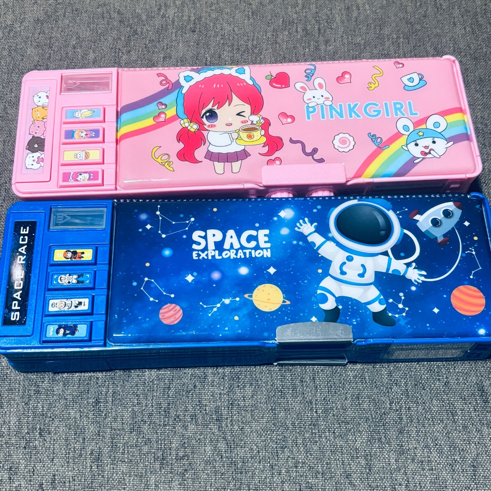 【2個パック】筆箱 ペンケース 小学生 女の子 男の子 両面開き 多機能 パスワード ロック ふでばこ 鉛筆削り付き 文房具 可愛い