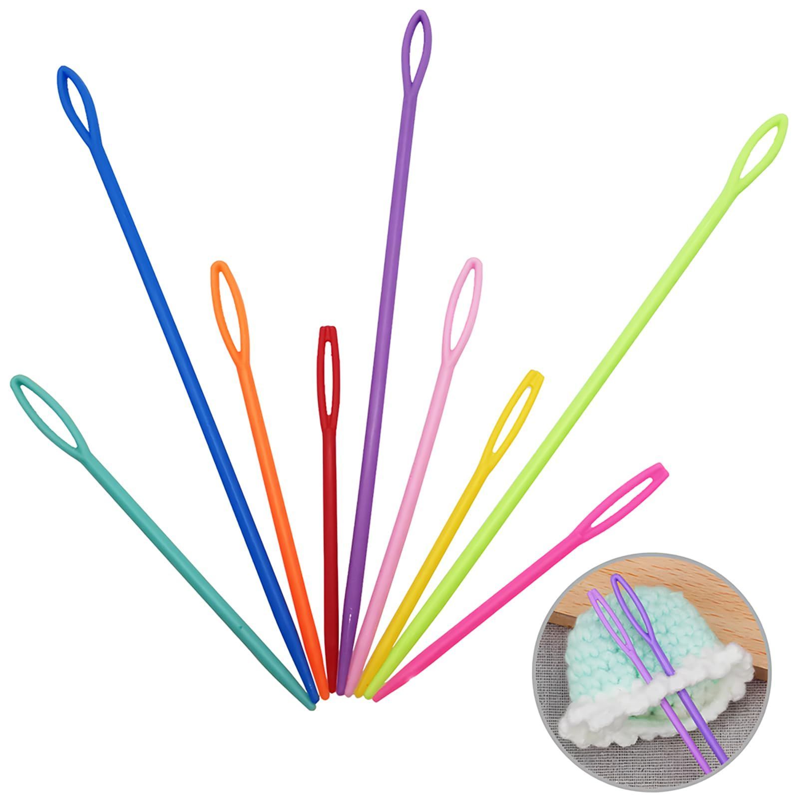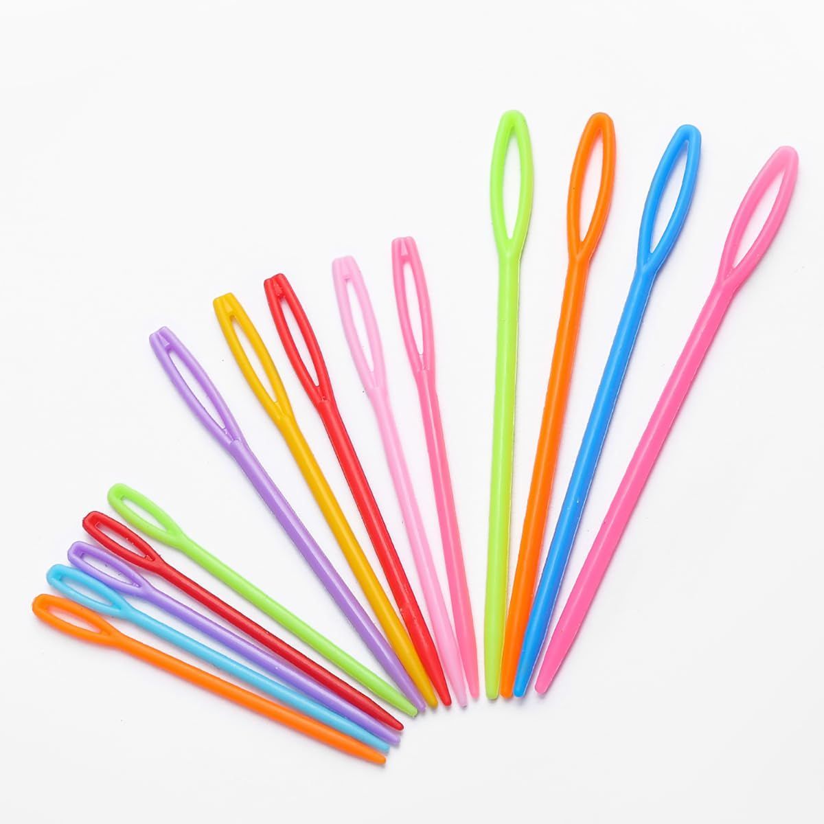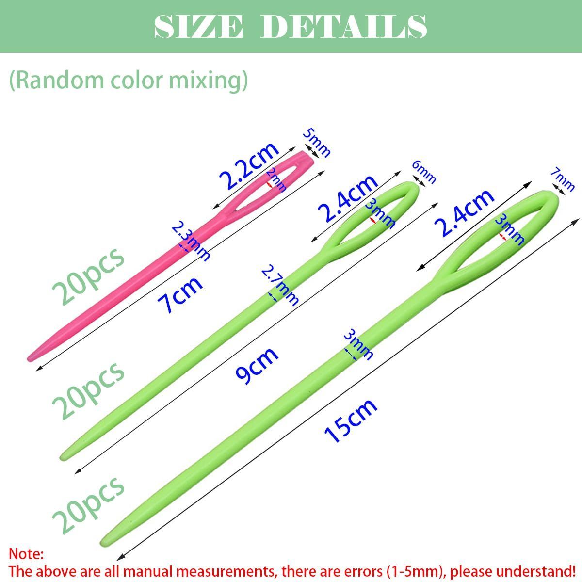 子供用プラスチック針 Dujelixa プラスチックミシン針 大型プラスチック針 ジャージ針 手縫い ランダムに色を混ぜる 7cm/9cm/15cm 刺繍針 子供用 (60本パック)