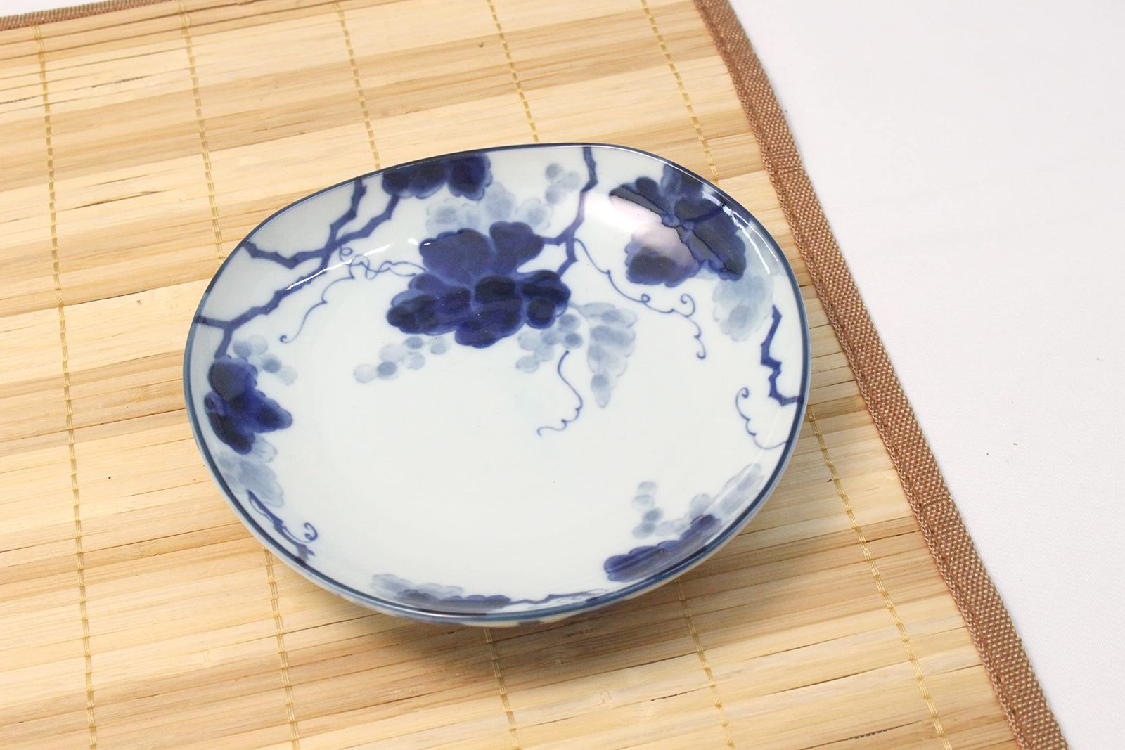 新京都のおばんざいやさんシリーズ藍染ぶどう 三角50 皿 1枚