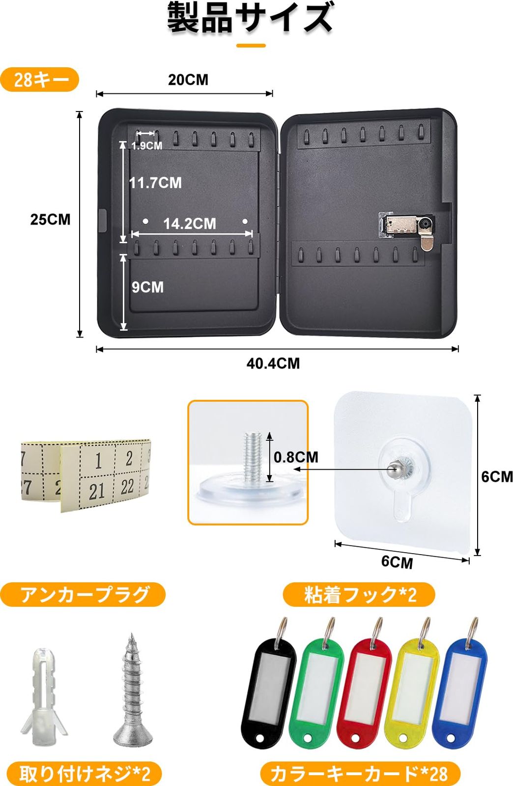 キーボックス 壁掛け キーケース 貼り付け式 鍵収納 3桁ダイヤル式 屋外 事務器 倉庫 事務所 工事現場 家庭用 屋外 盗難防止 日本語取扱説明書付き (黒 28キー)