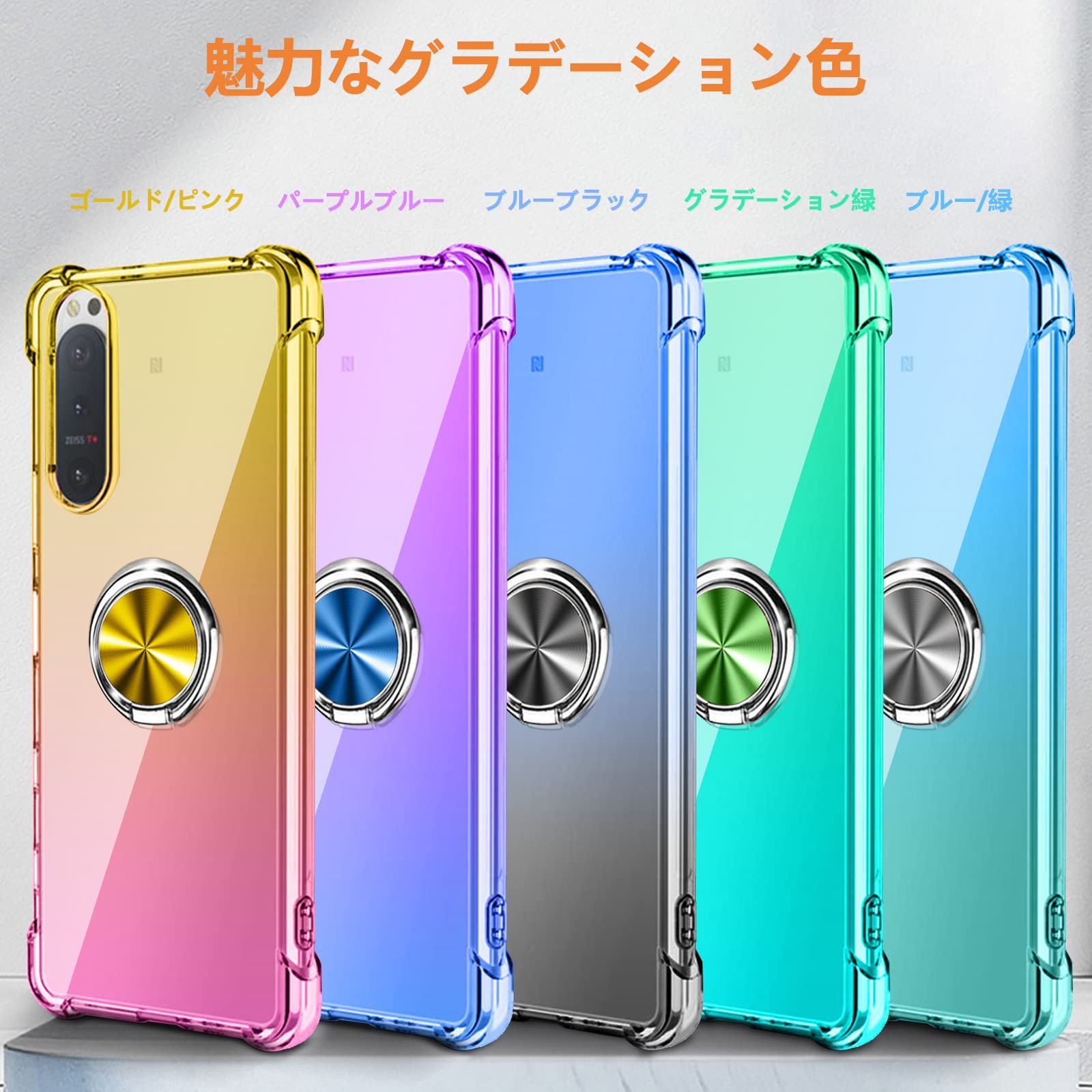 AQUOS sense8 用 ケース リング付き SH-54D SHG11 用 クリア 薄型 グラデーション色 ケース 軽量 tpu 耐衝撃 スマホケース 透明 米軍MIL規格取得 おしゃれ 黄変防止防塵一体型 人気 車載ホルダー アクオスセンス8 用 携帯カバー グラデーション緑 MD-SXZH-036-01