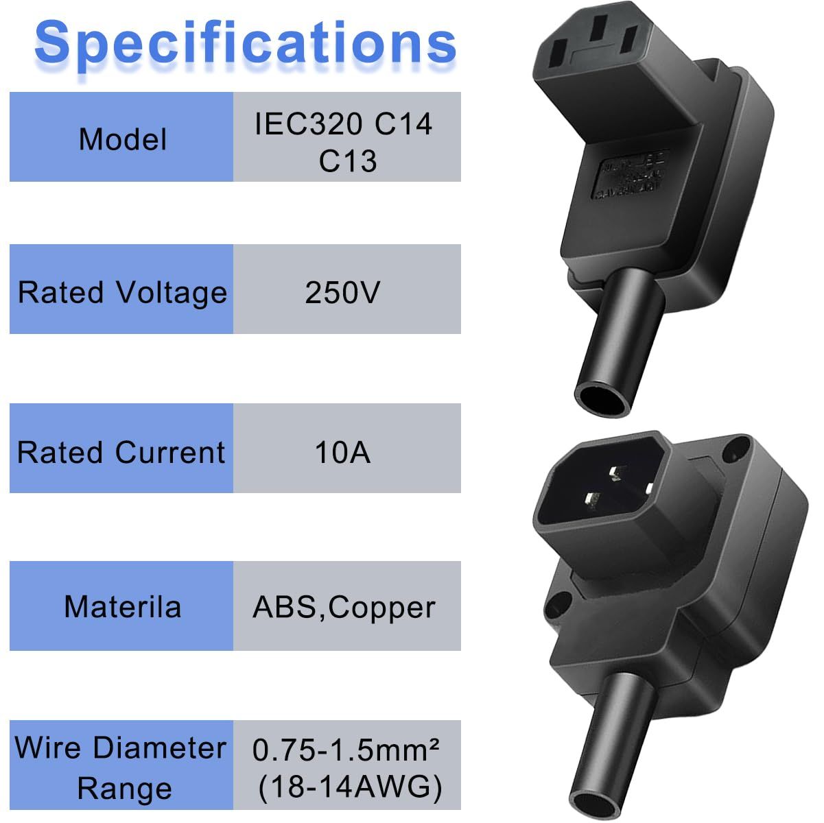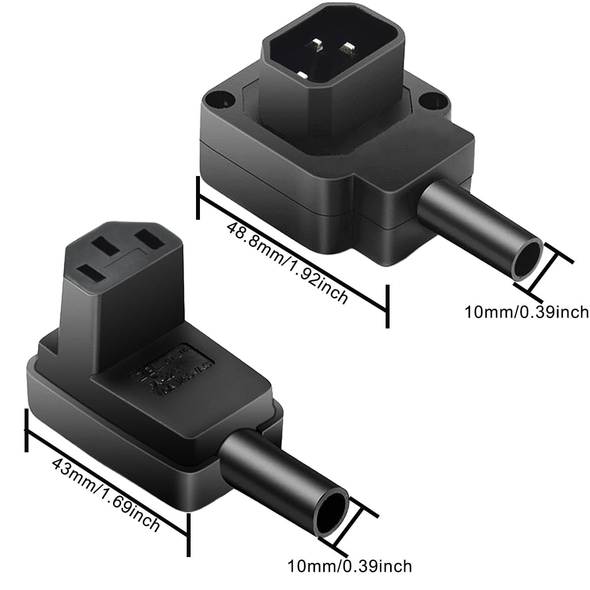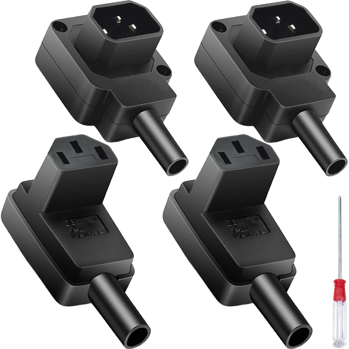 Xiatiaosann 4個 IEC320 C13 C14 90度コネクタ 250V 10A 3ピン オス メス インライン 再配線可能電源プラグソケットアダプタ、PDUキャビネット LEDライト コンピュータケース 電気自動車用