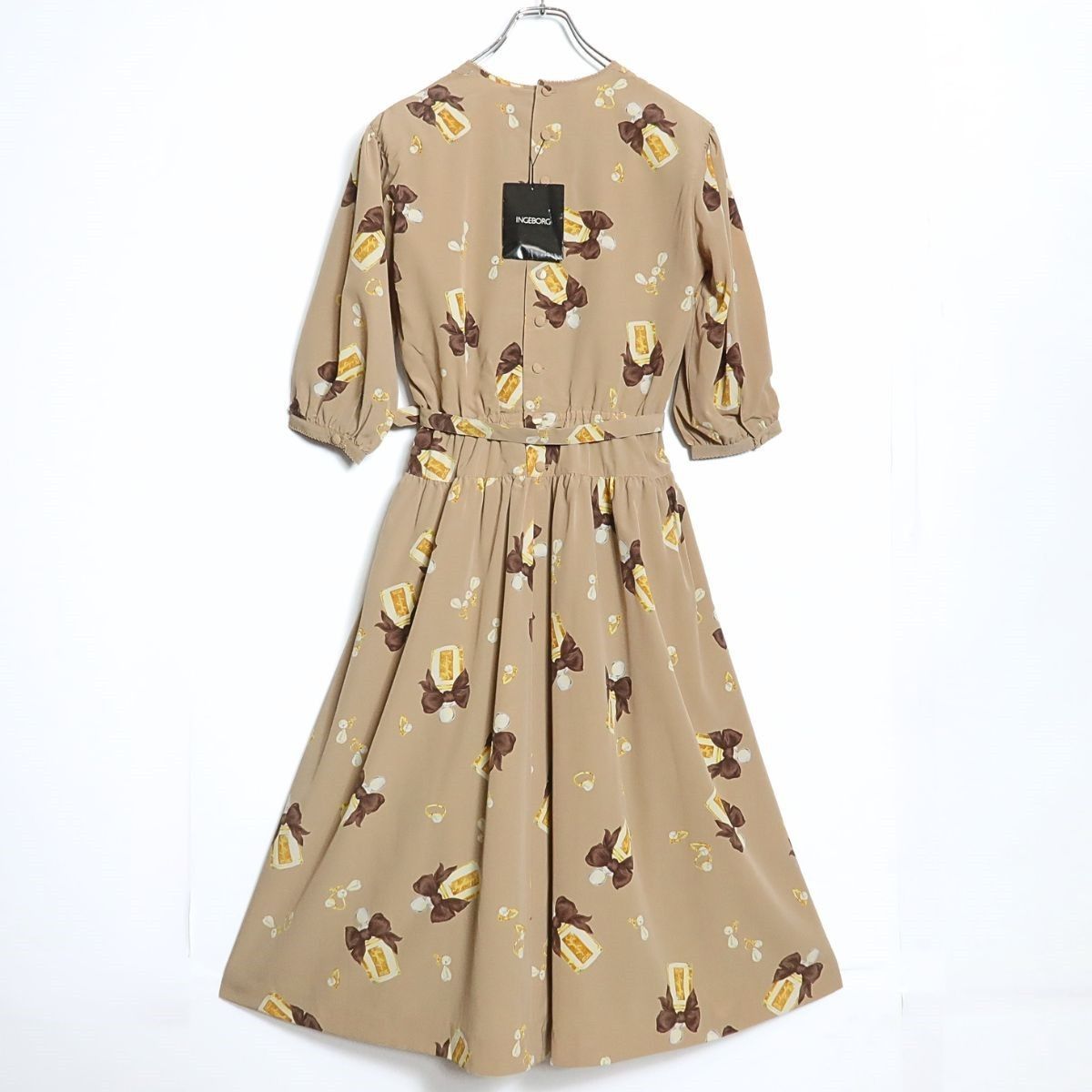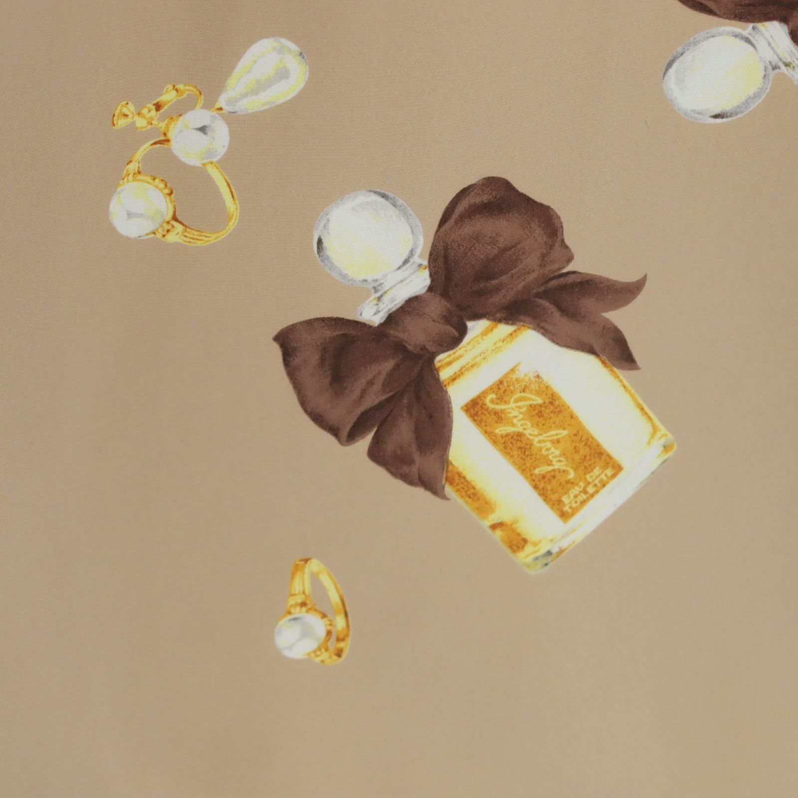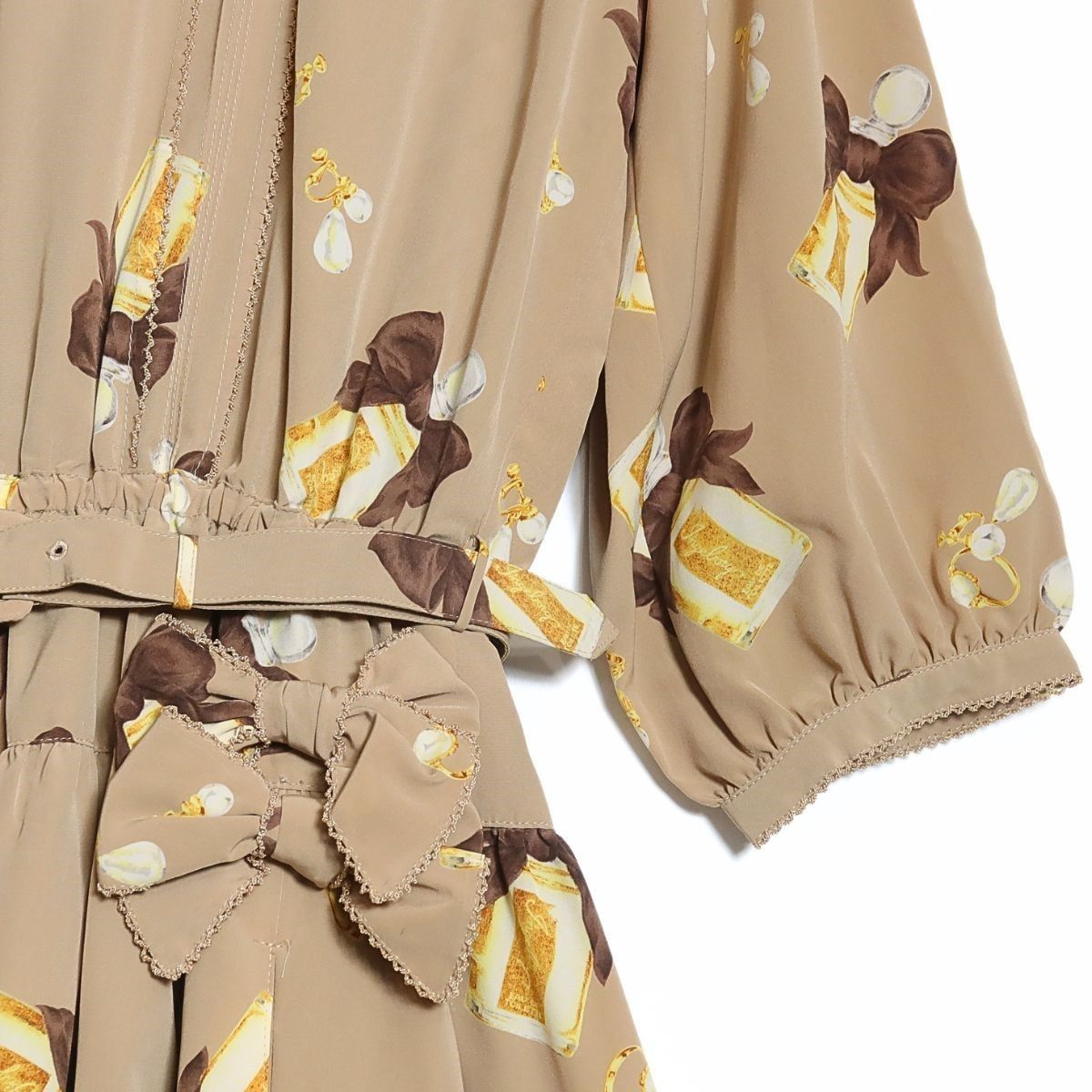 香水瓶プリントがエレガントな五分袖ワンピースです。