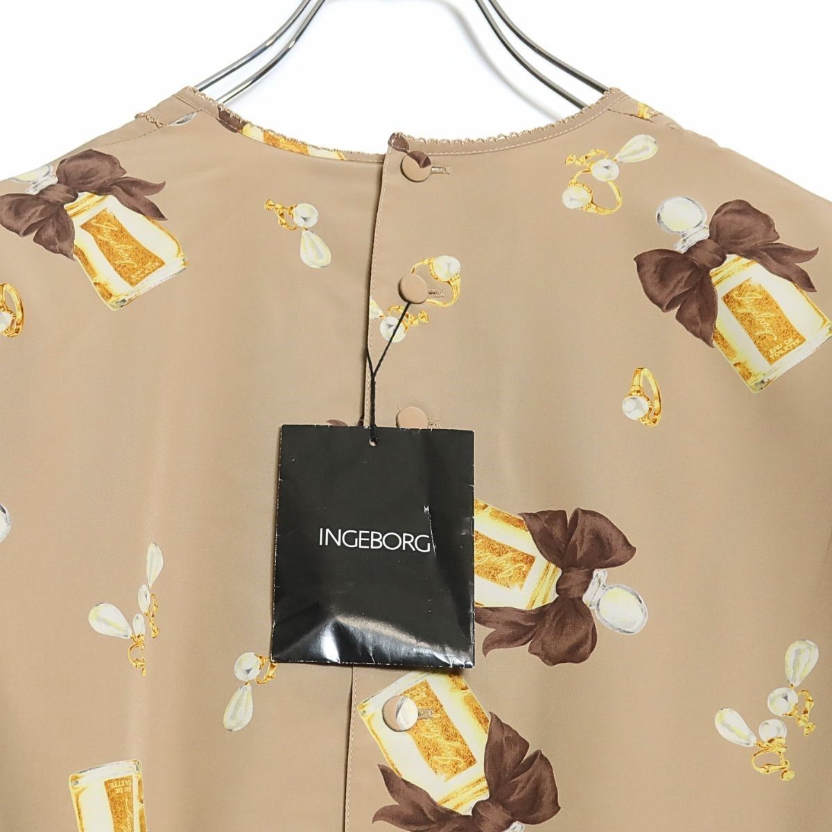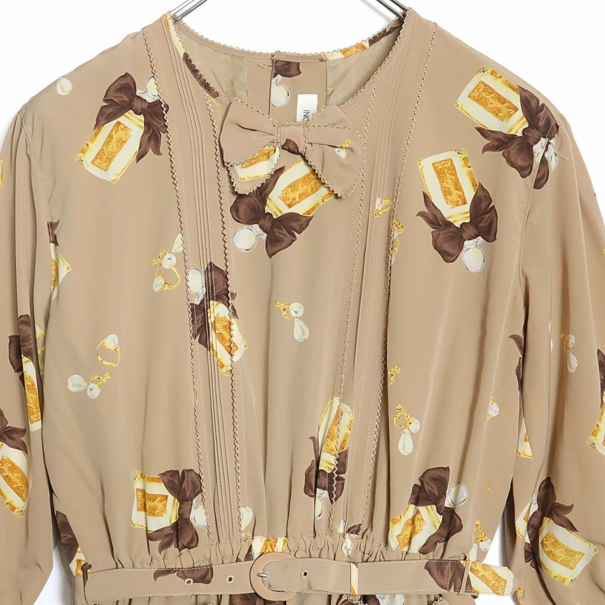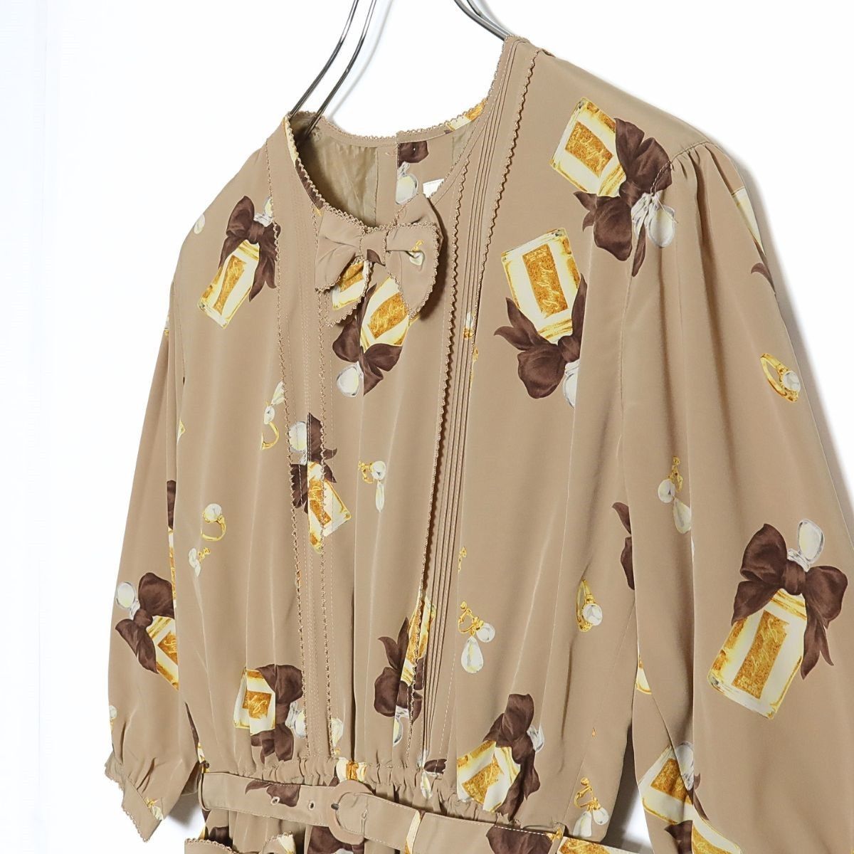 香水瓶プリントがエレガントな五分袖ワンピースです。