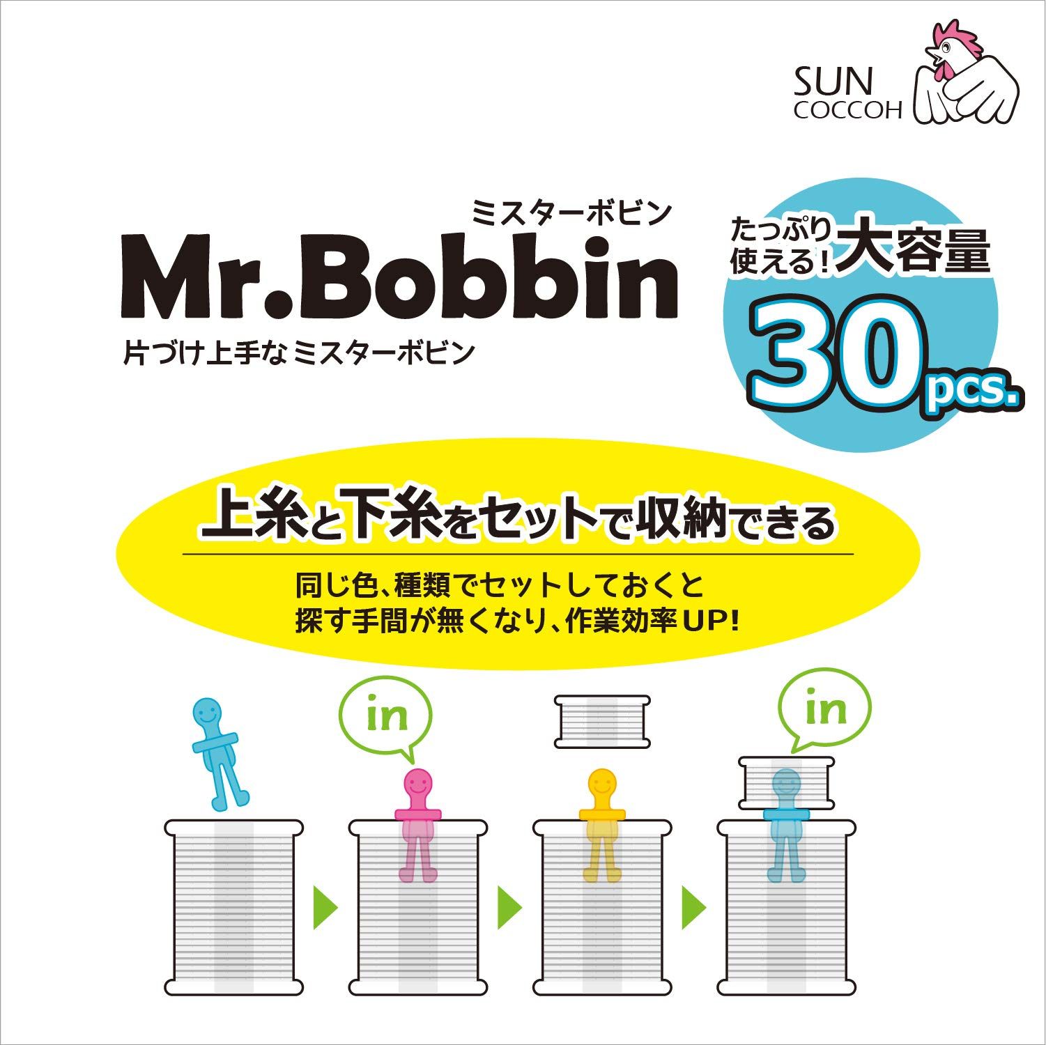 上糸と下糸をセットで収納できる、片付け上手なミスターボビン。同じ色、種類でセットしておくと探す手間が無くなり、作業効率UP!たっぷり使える30ヶ入り大容量タイプです。