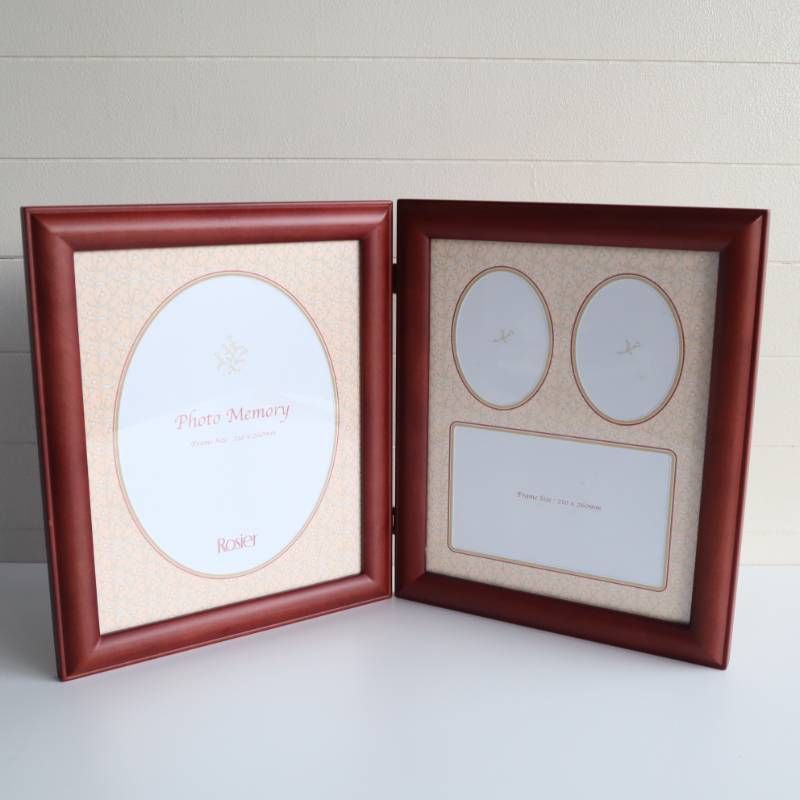 210×260mmサイズの写真やポスターを2面に飾れるダブルタイプで、家族写真や記念写真、インテリアのアクセントにもぴったりです。