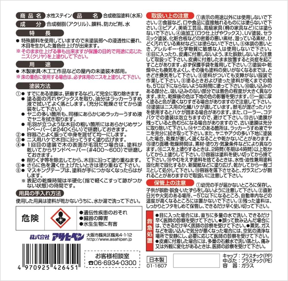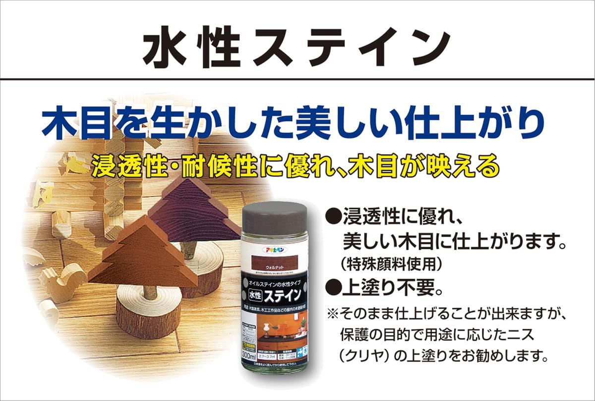 アサヒペン 塗料 ペンキ 水性ステイン 300ml ブラック 水性 艶消し ステイン仕上げ 上塗り不要 シックハウス対策品 日本製
