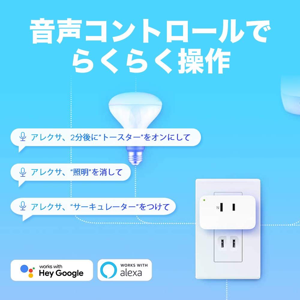 特徴 Alexa 認証取得。電源のオン・オフを制御するスマートWi-Fiプラグ。