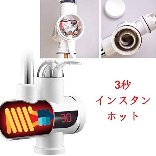 チャミ 電気蛇口 電気温水ヒーター 電気水栓 LEDディスプレイ付き バスルームキッチン用 温かい 加熱速い(下の取水口 高いパイプ)