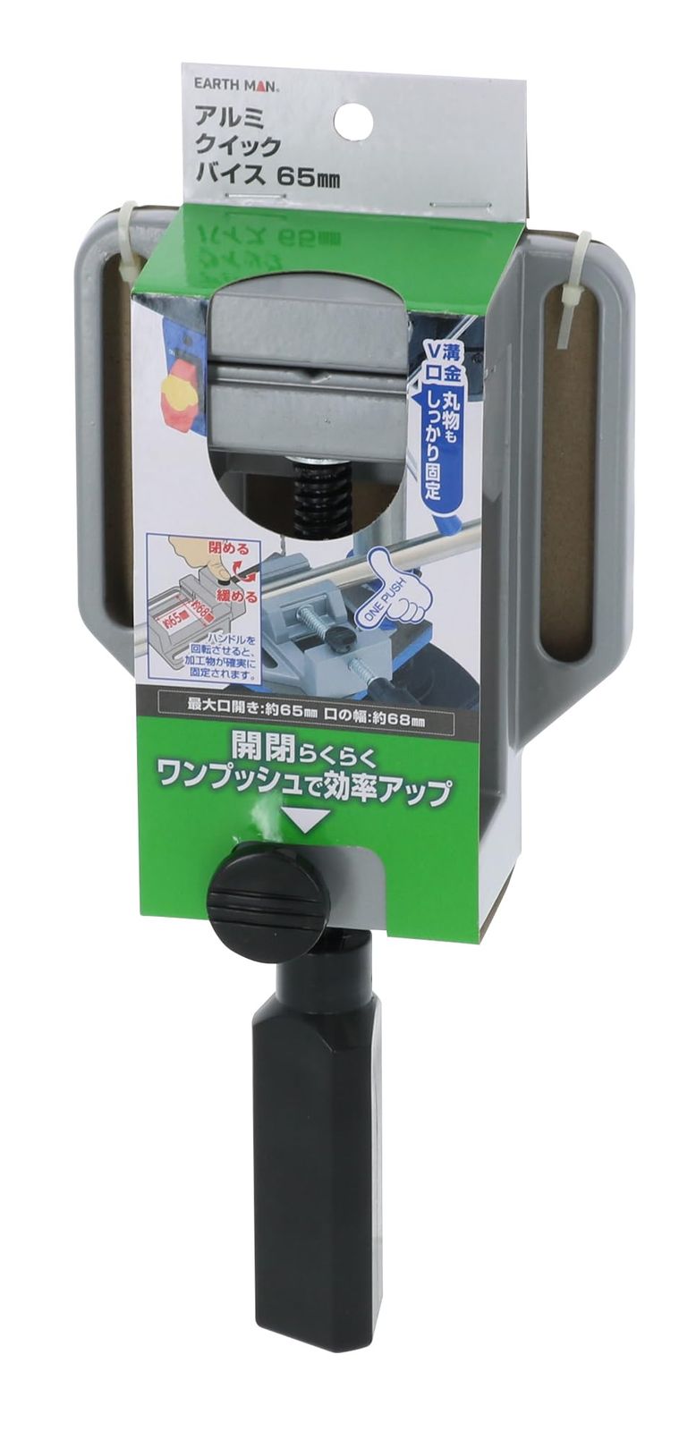 高儀(Takagi) EARTH MAN アルミ クイック バイス 65mm ボール盤 卓上 テーブル 万力 小型 最大開口65mm ワンプッシュ 固定 加工 V溝 アースマン