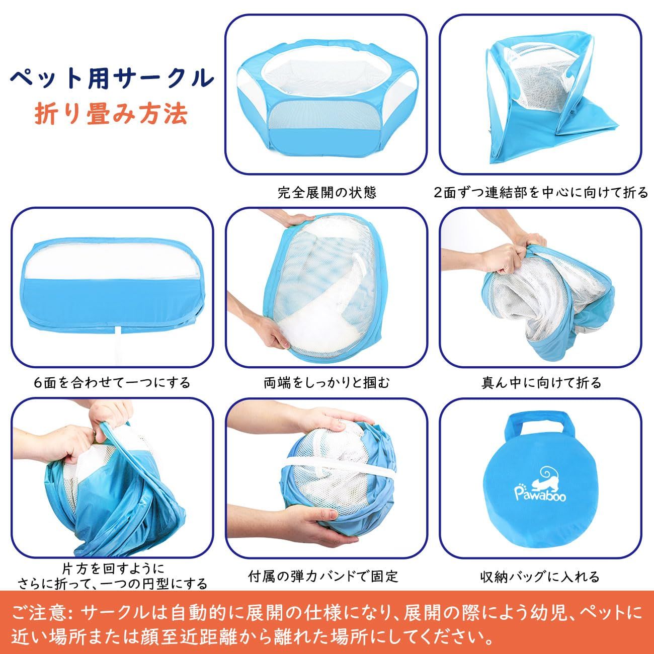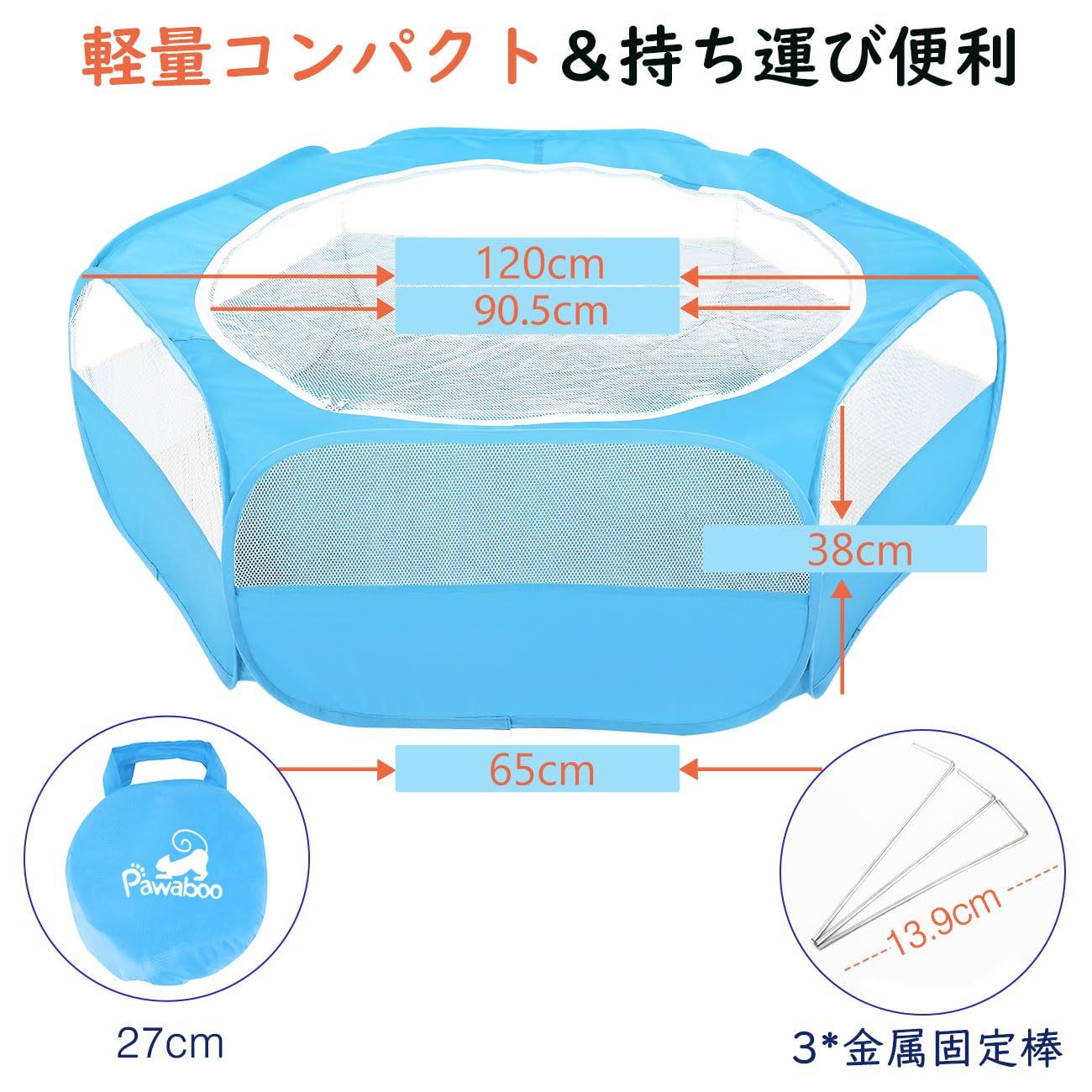 サークル ペットサークル Pawaboo ペットサークル 折りたたみ 小動物フェンス プレイサークル ペット ゲージ 動物フレンドルーム 遊び用のサークル 屋外/屋内 飼育サークル 動物サークル ウサギ ハリネズミ用 幅120 x 高さ38cm Light Blue