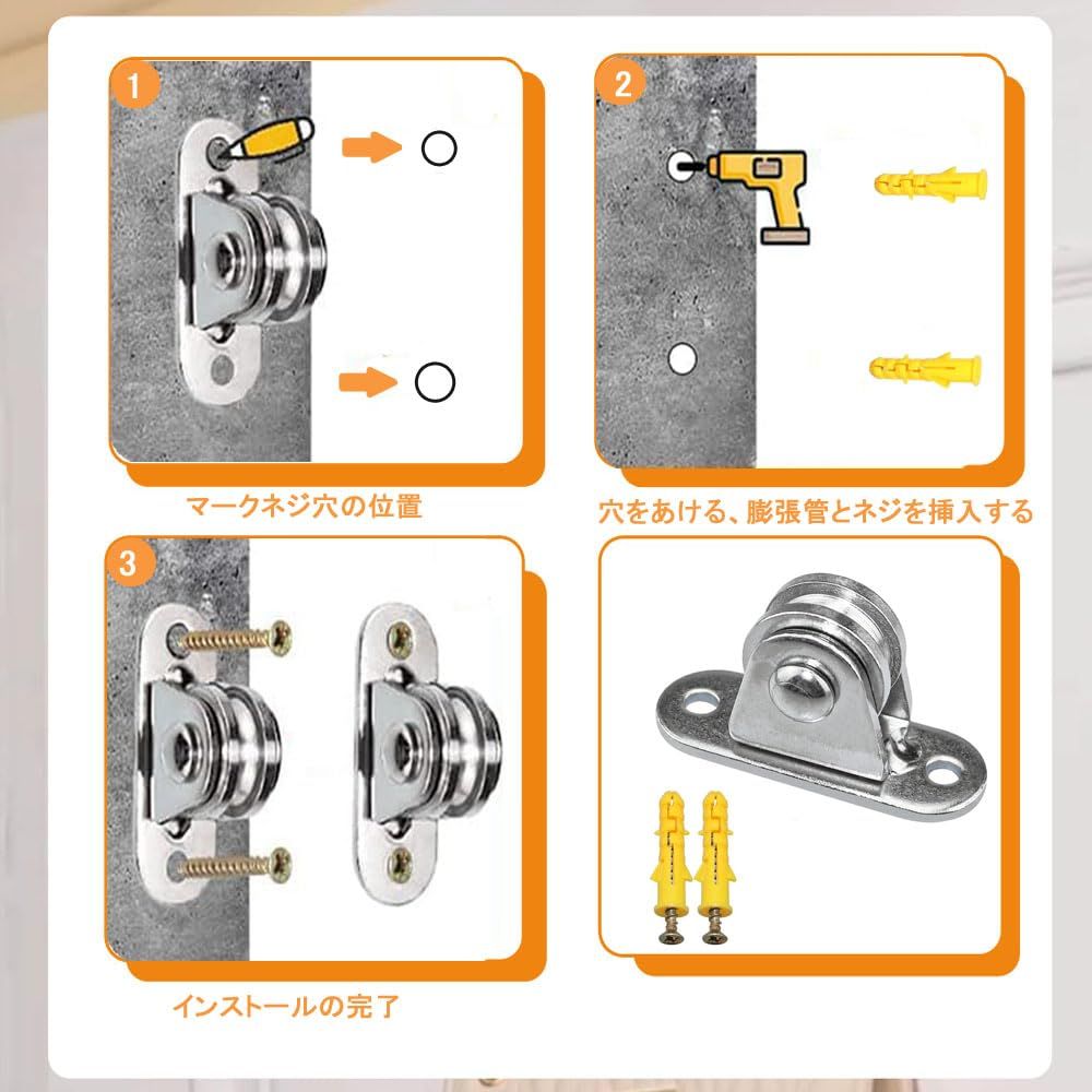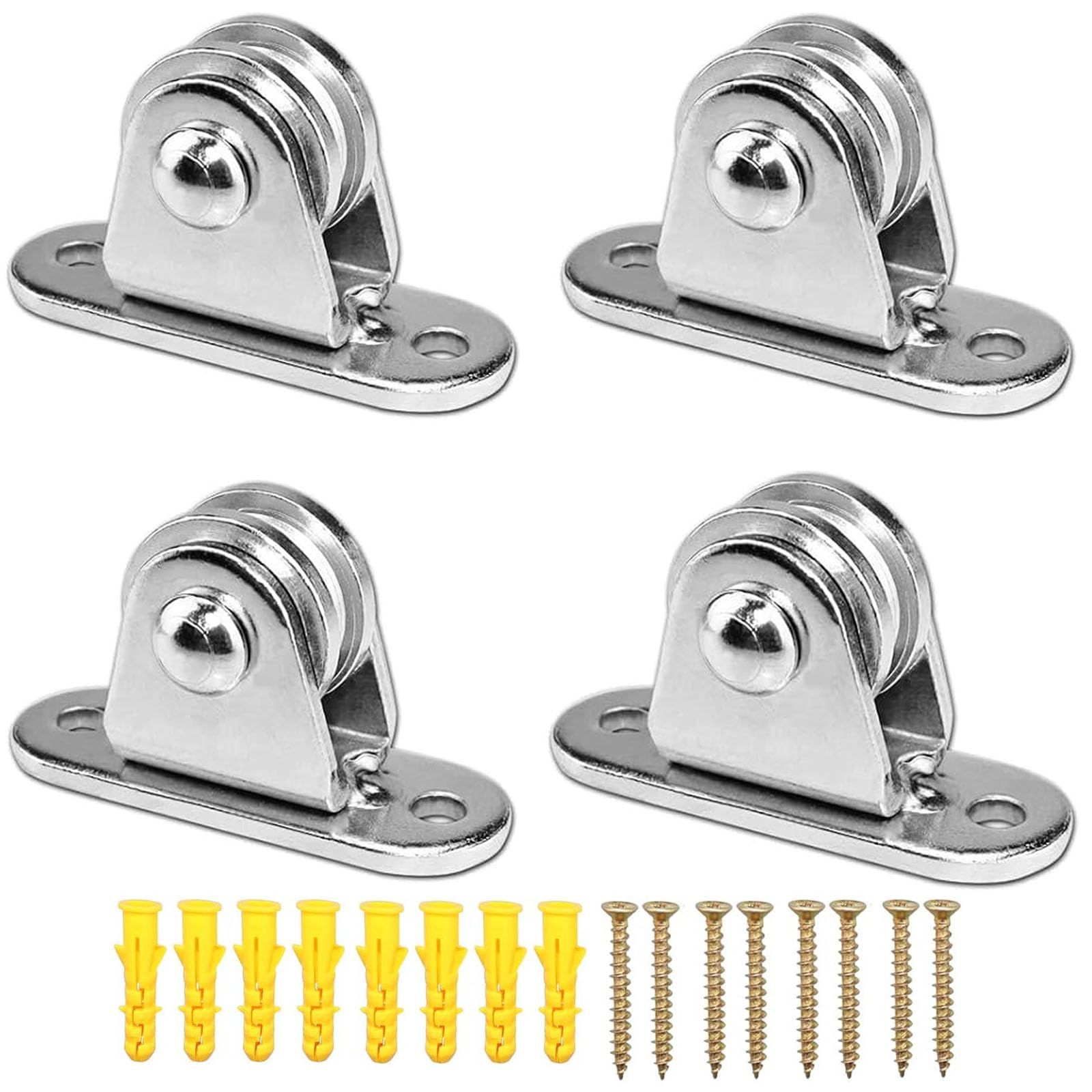 小型プーリーブロック 滑車 ローププーリー 固定プーリーホイール ステンレス製 耐荷重176 ポンド ネジ付 簡単な取り付け 省力プーリーローラー 貨物輸送 建設工事 クライミング (4個セット)