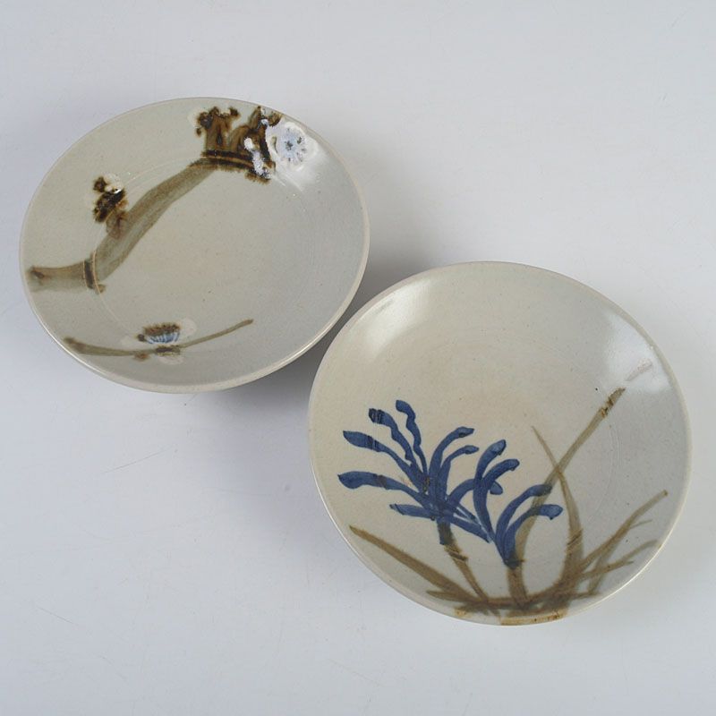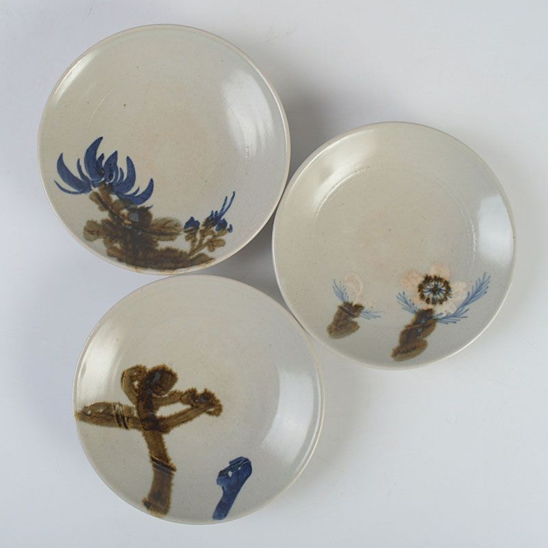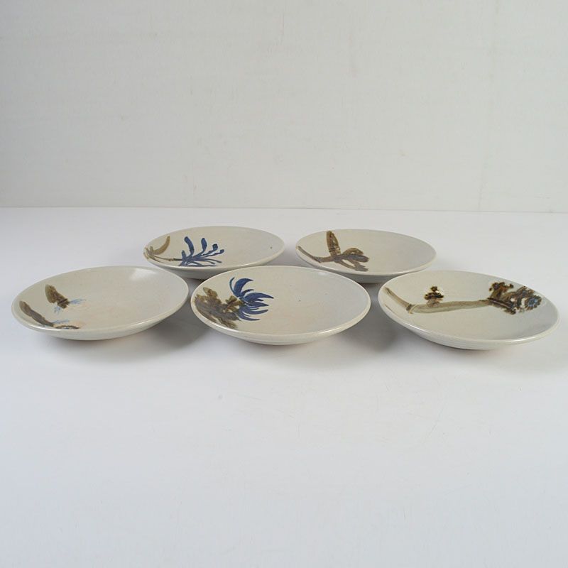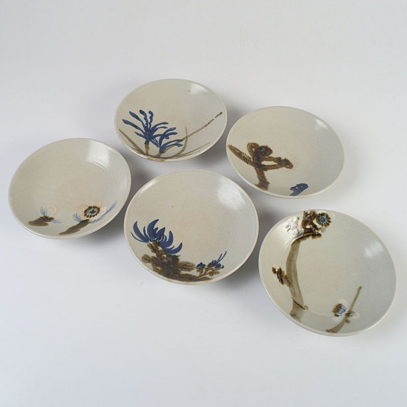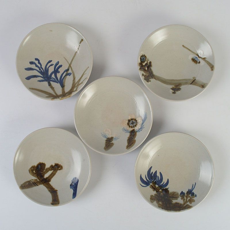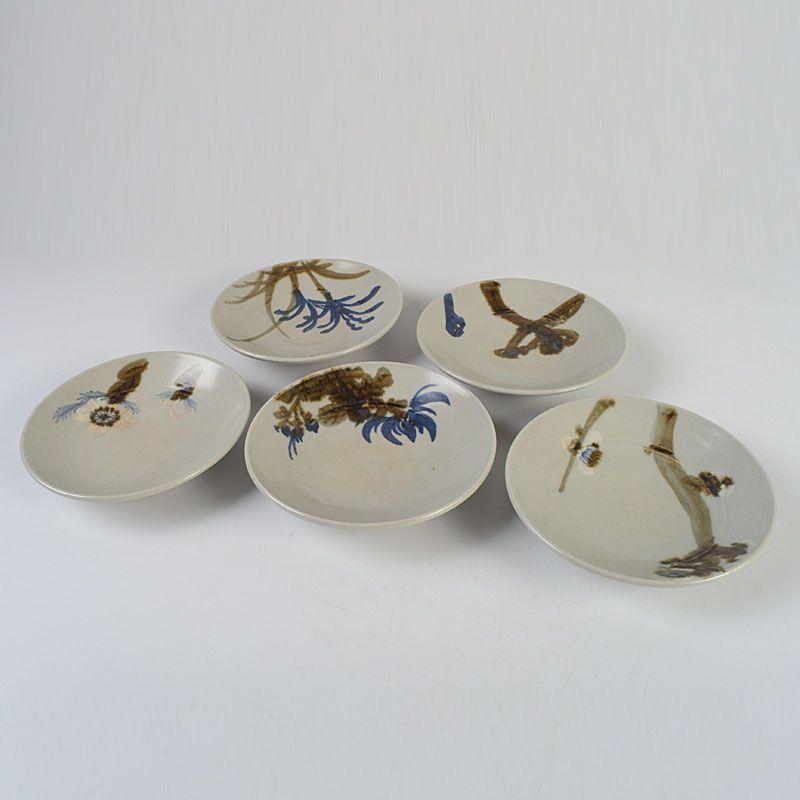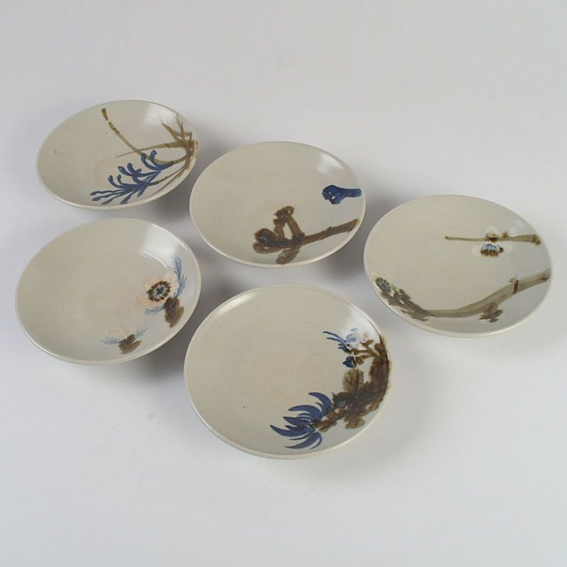 京焼 清水六兵衛造 絵変 染付花草文 皿 五客 N S277