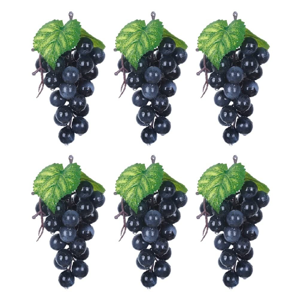 NUOLUX ぶどう 食品サンプル ブドウ 果物 サンプル フルーツ模型 ぶどう フェイク ブドウ 人工 モデル 葡萄 置物 写真道具 展示用 果物屋さん 本棚の装飾品 車のダッシュボード 誕生日ギフト 雑貨 オブジェ 6本セット (24個) パプル