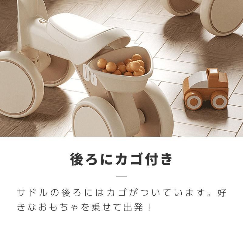 後ろにカゴ付きサドルの後ろにはカゴがついています。好きなおもちゃを乗せて出発!!
