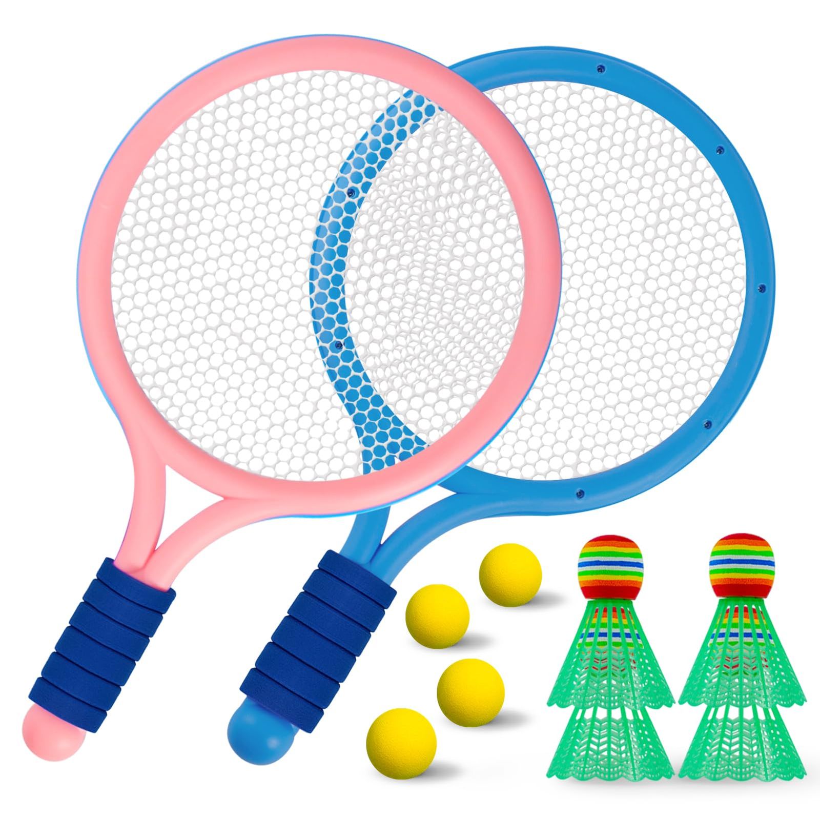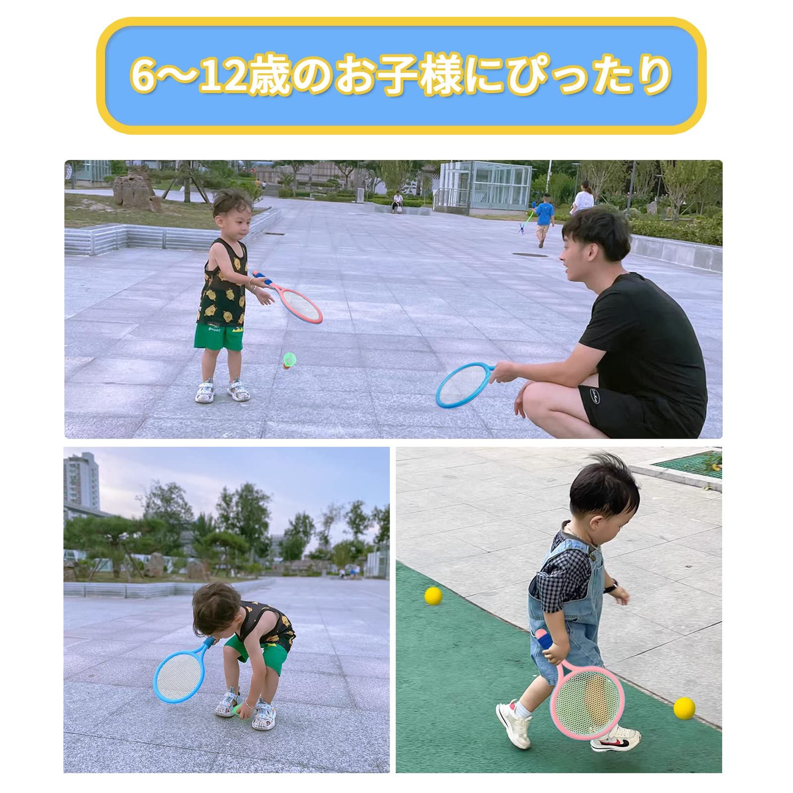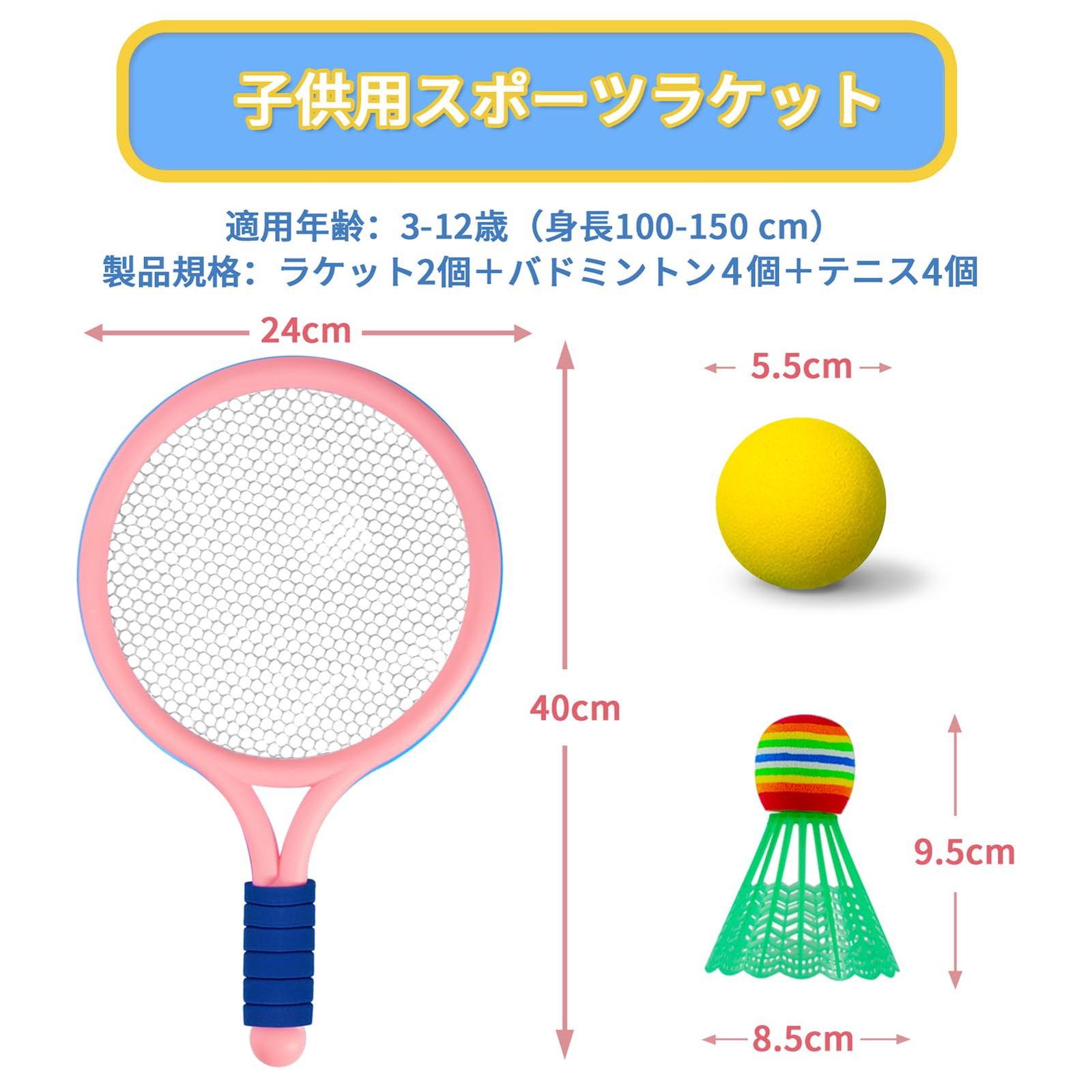 【コンパクトサイズ・6~12歳のお子様に最適】【パッケージ内容:バドミントンラケット*2+シャトル*4+EVA素材のテニスボール*4】縦40cm、横24cmの小型のラケットで、身長100cm~150cmの子どもに適しています。【二種類の遊びに対応した球が付属】バドミントン用のシャトルとEVA素材のテニスボールが付属しています。