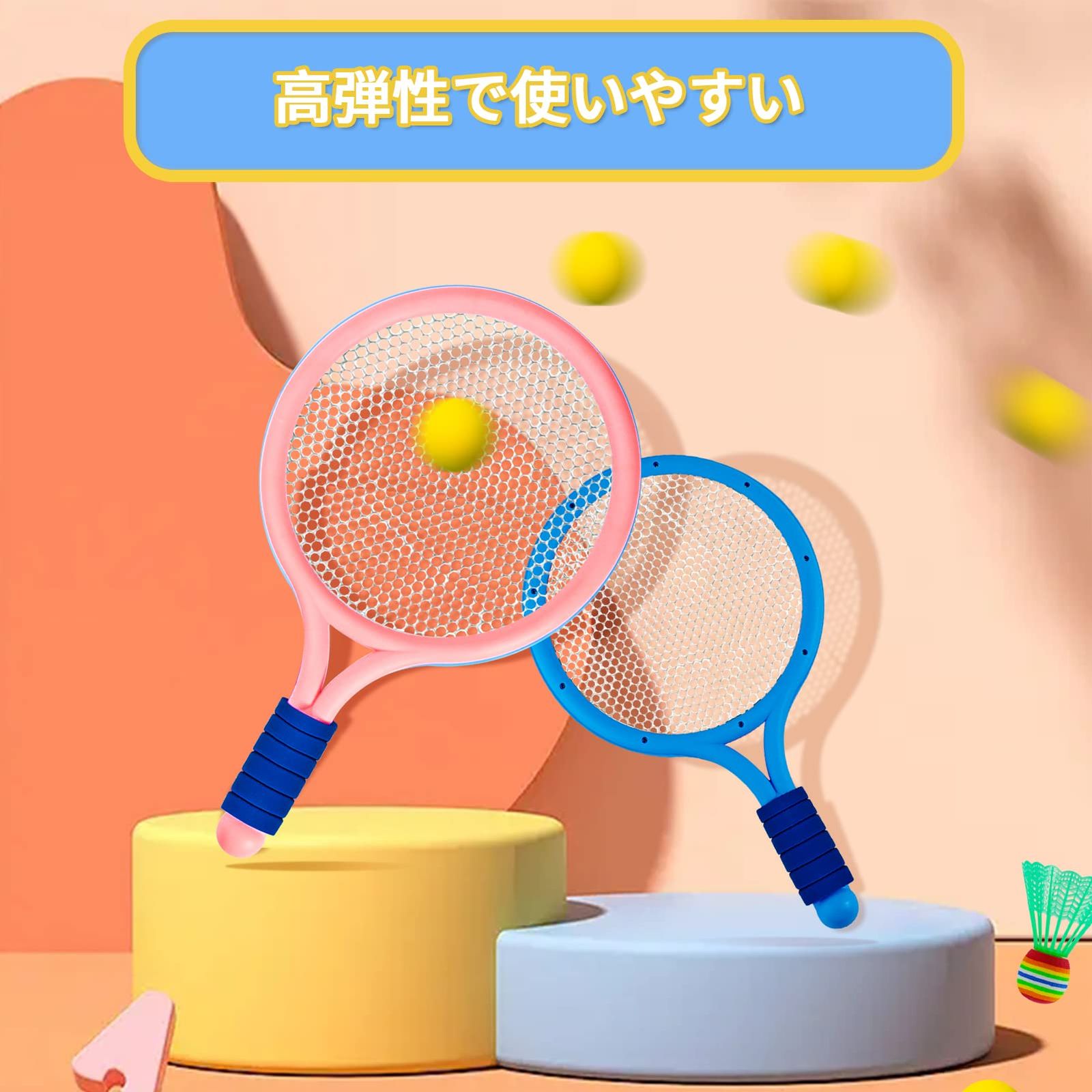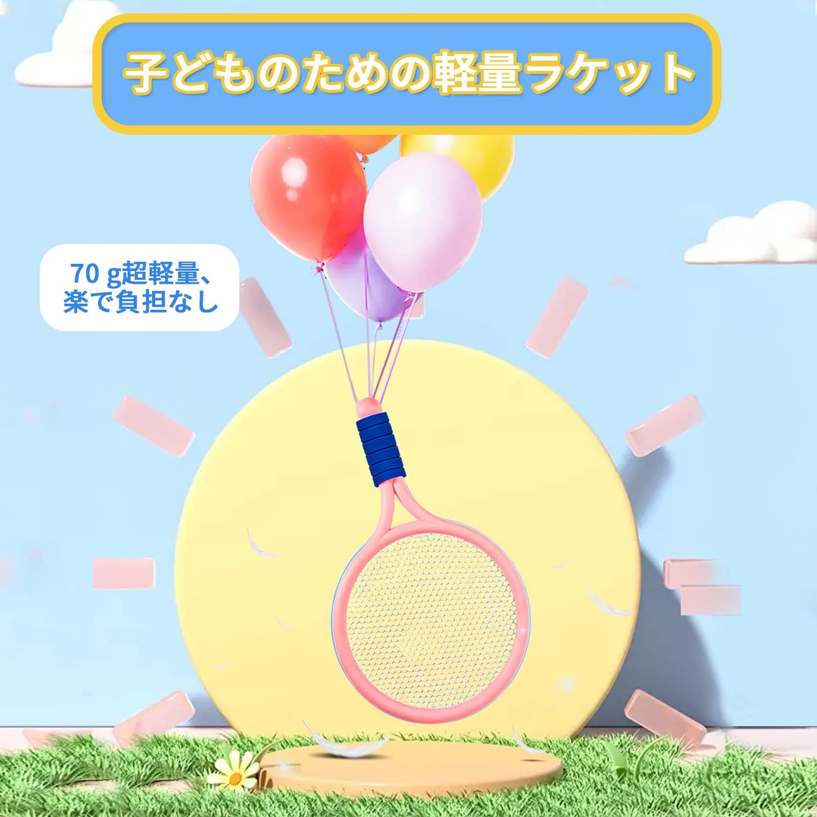 【高耐久のネット、壊れにくい柔軟な素材を使用】ラケットと一体化したネットは頑丈に作られており、長く使っても縫い目の緩みや剥がれがなく、壊れにくくできています。【壊れにくい柔軟な素材を使用】耐久性のあるPVC+EVA素材を使用しており、金属製のラケットより軽く、また衝撃で変形することがありません。子どもにより使いやすい設計になっています。