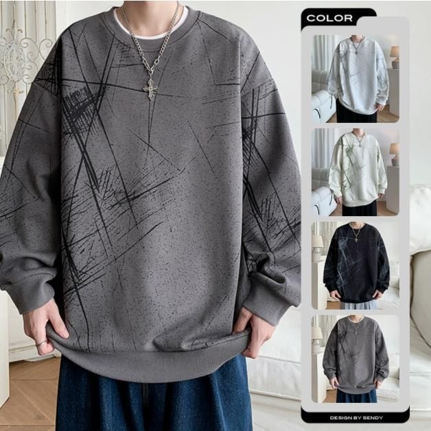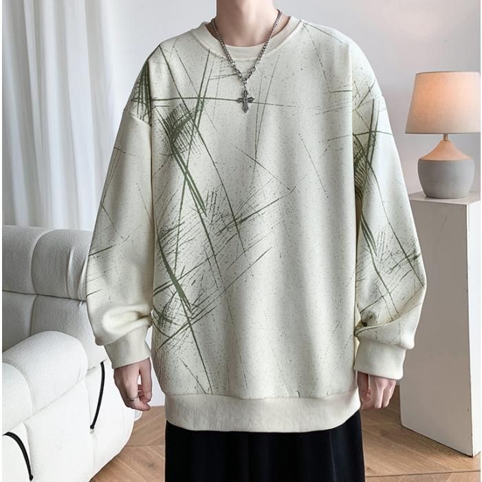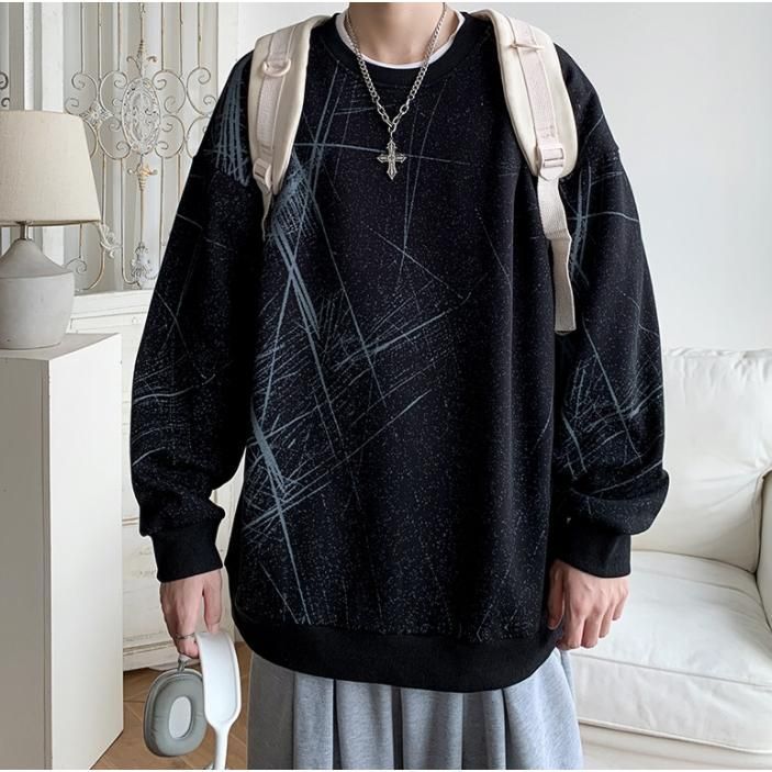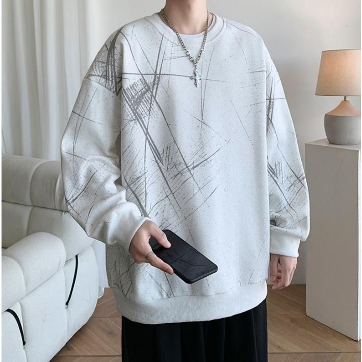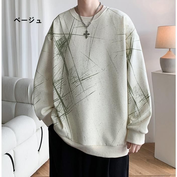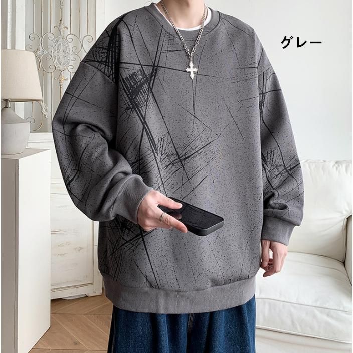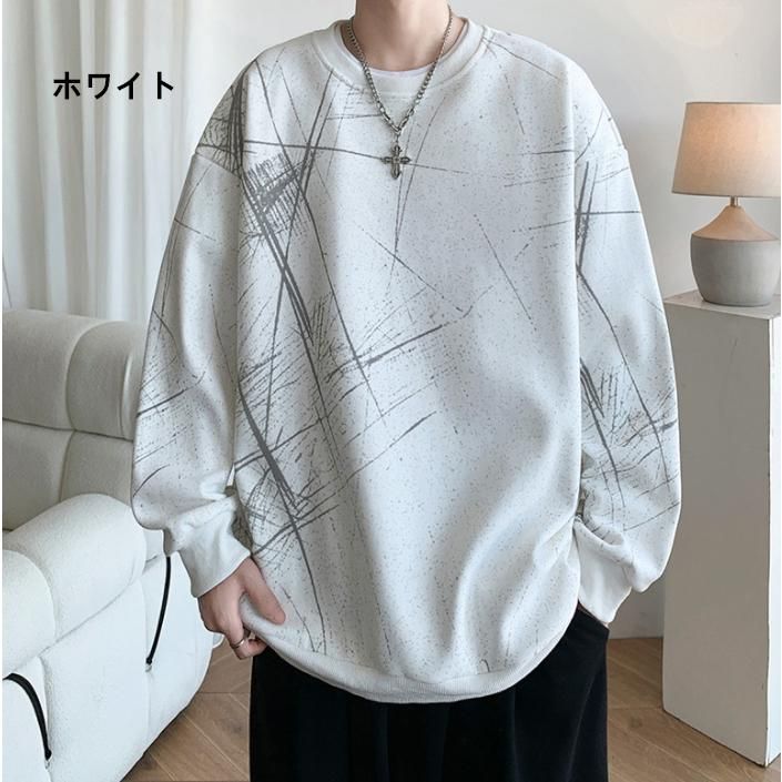 長袖トレーナー メンズ トレーナー スウェット ネコ柄 クルーネック プルオーバー カジュアル 秋