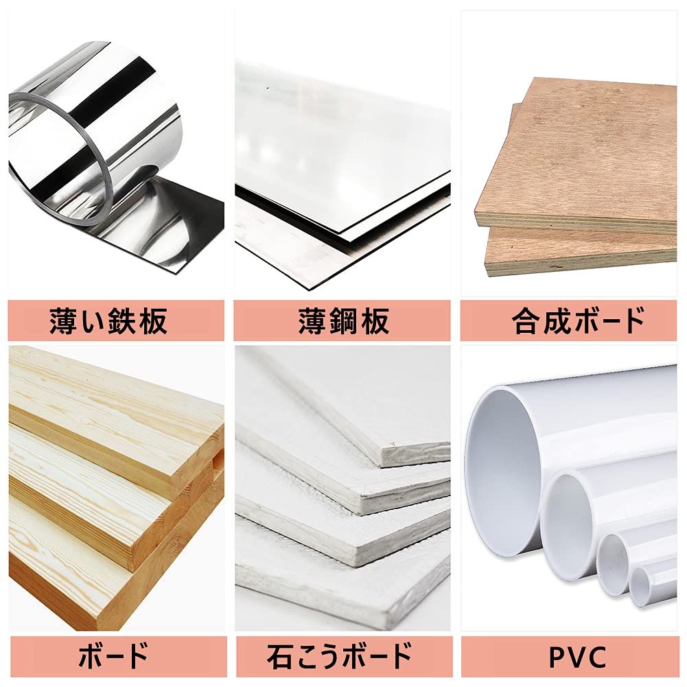 【用途】石膏ボード、プラスチック、木材、合板、薄鉄板、薄アルミ板の穴あけに。配管、電気工事、プロの現場から日曜大工、DIYの延長まで、さまざまな穴あけ作業に使用できるホールカッター。 対応機種】 電動ドリル、コードレスドリル。精度が必要な場合は、ドリルやドリルスタンドを使用して穴あけを行ってください。
