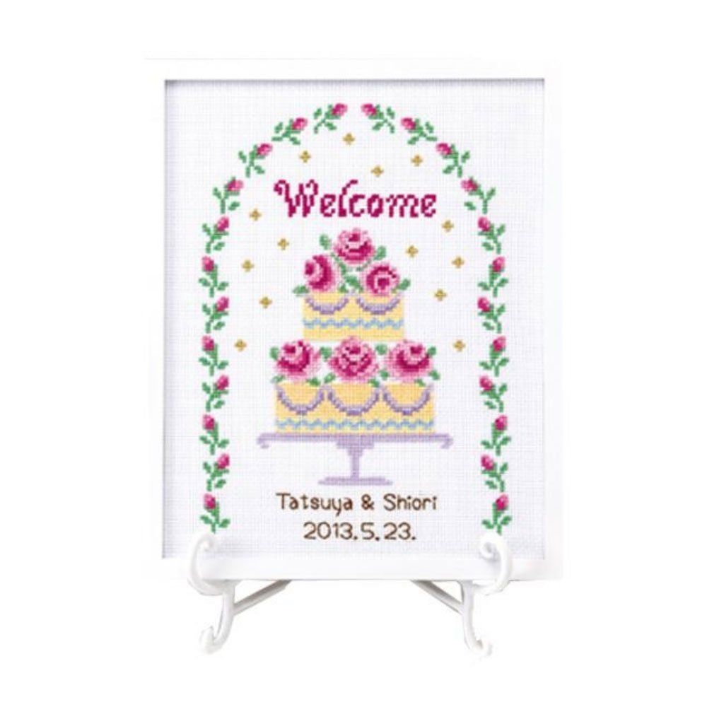 バラをあしらった華やかなクロスステッチのウェルカムボードです