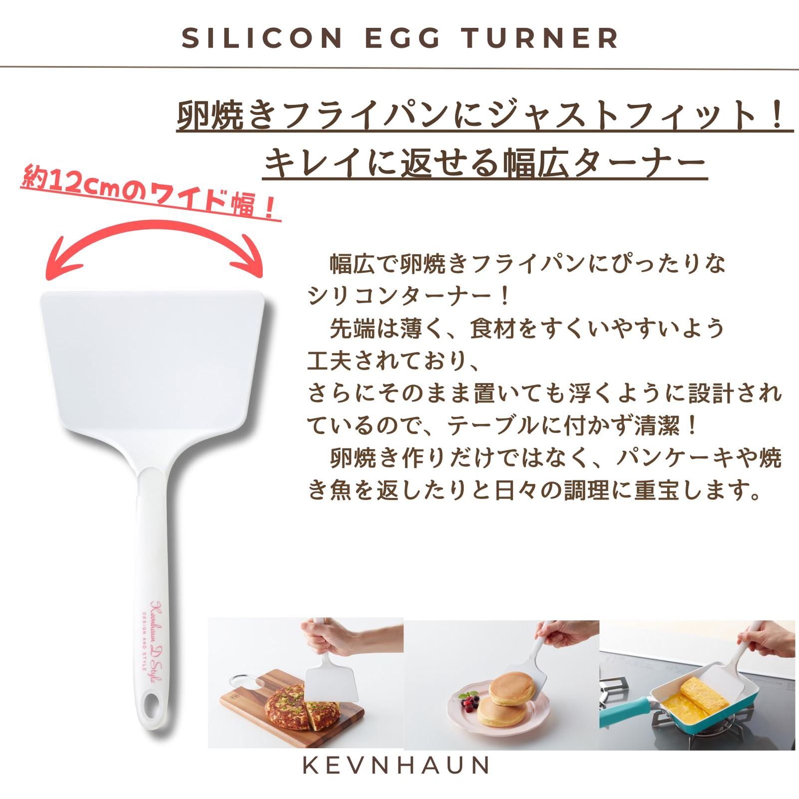 ケヴンハウン(Kevnhaun) シリコンエッグターナー 幅広 ヘラ シリコン テーブルに置いても汚れない設計 お好み焼き ヘラ 返し 卵焼きターナー KDS.986