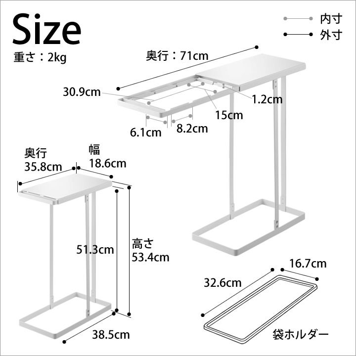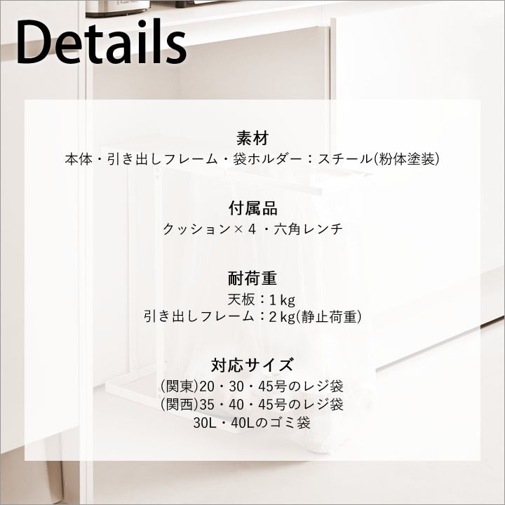 【素材】本体・引き出しフレーム・袋ホルダー:スチール(粉体塗装)