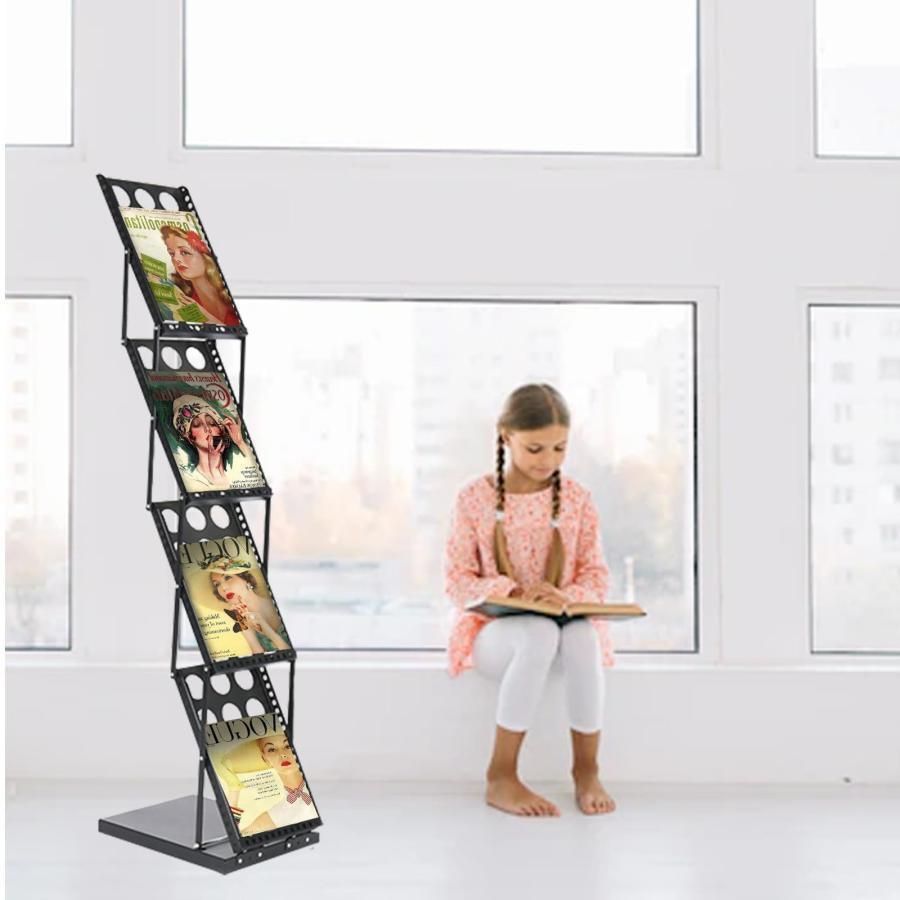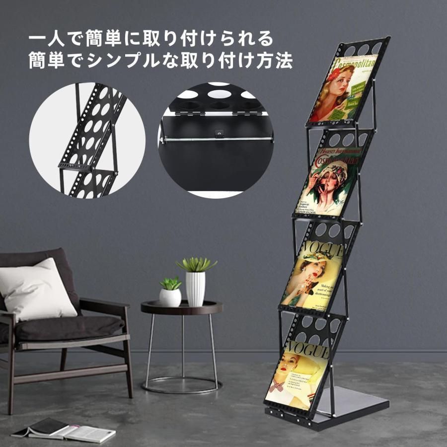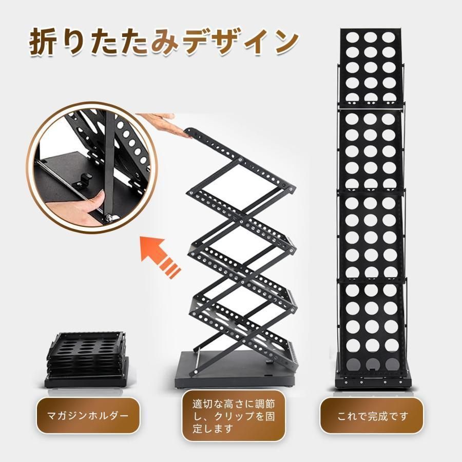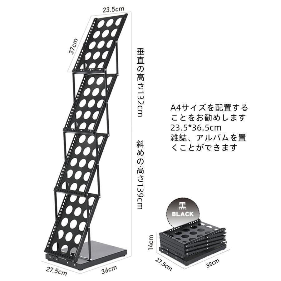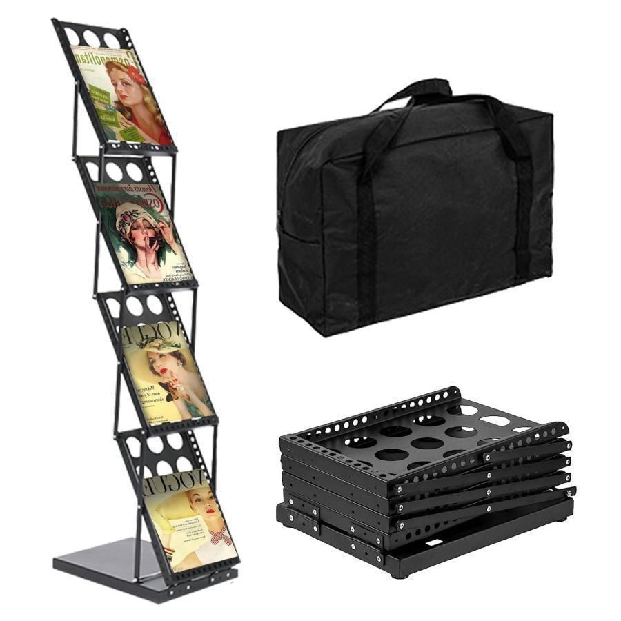 カタログスタンド マガジンラック 折りたたみ式4段アイアンシェルフオックスフォード布製バッグ付き A4情報ラック 片面パンフレットラック