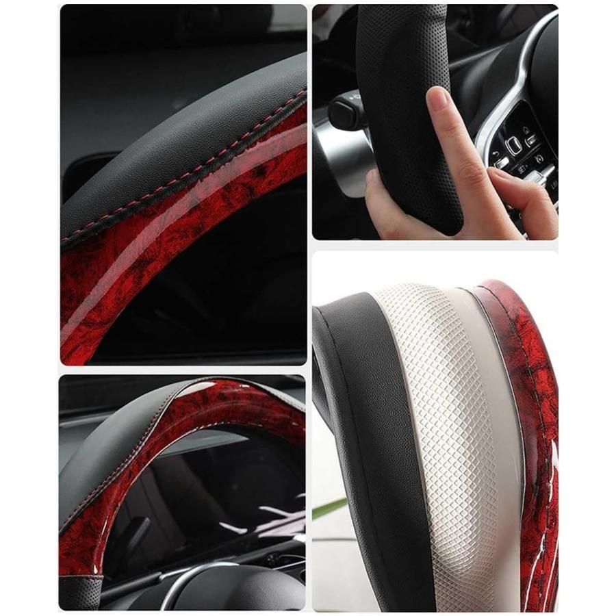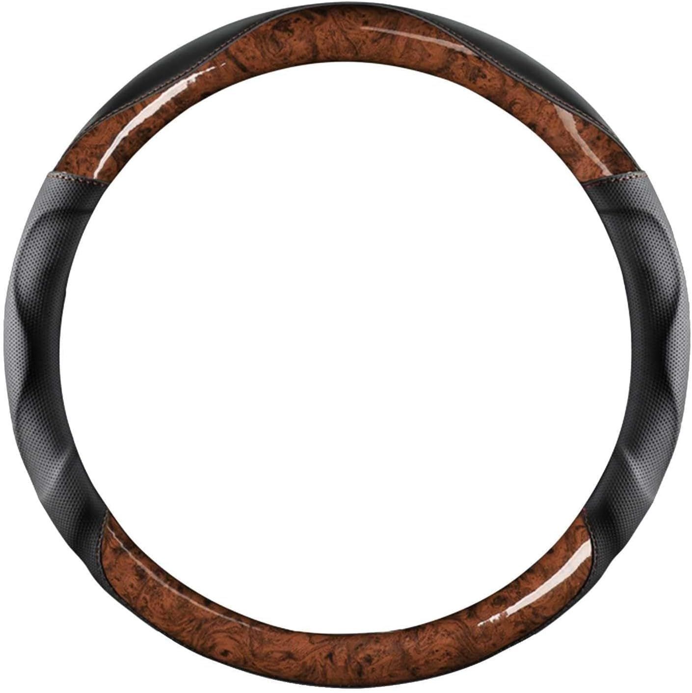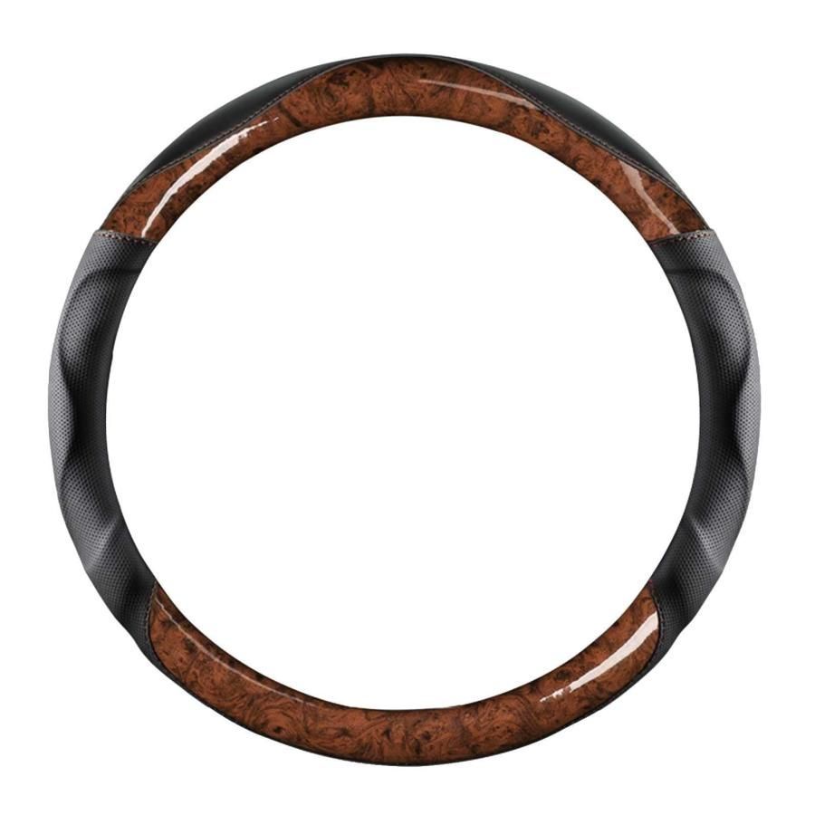 【木目調デザイン】手の形にフィットする3Dグリップ!車 ハンドルカバー、光沢のあるカーボンファイバー素材を使用したうまくデザインされた木目調は、車のインテリアに非常に適しています。 ハ