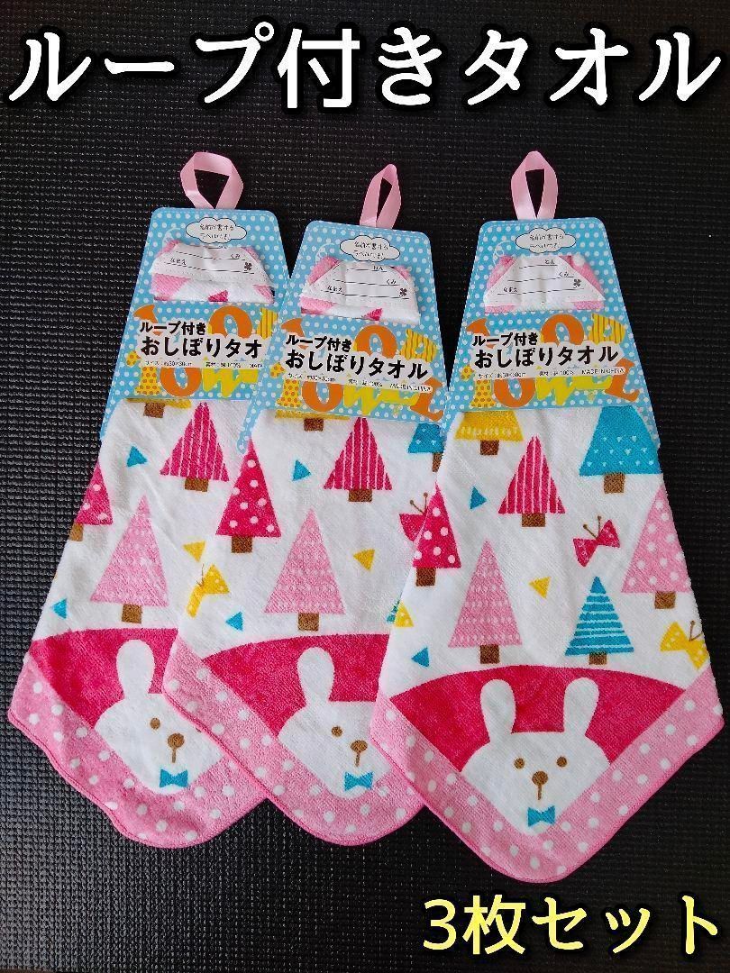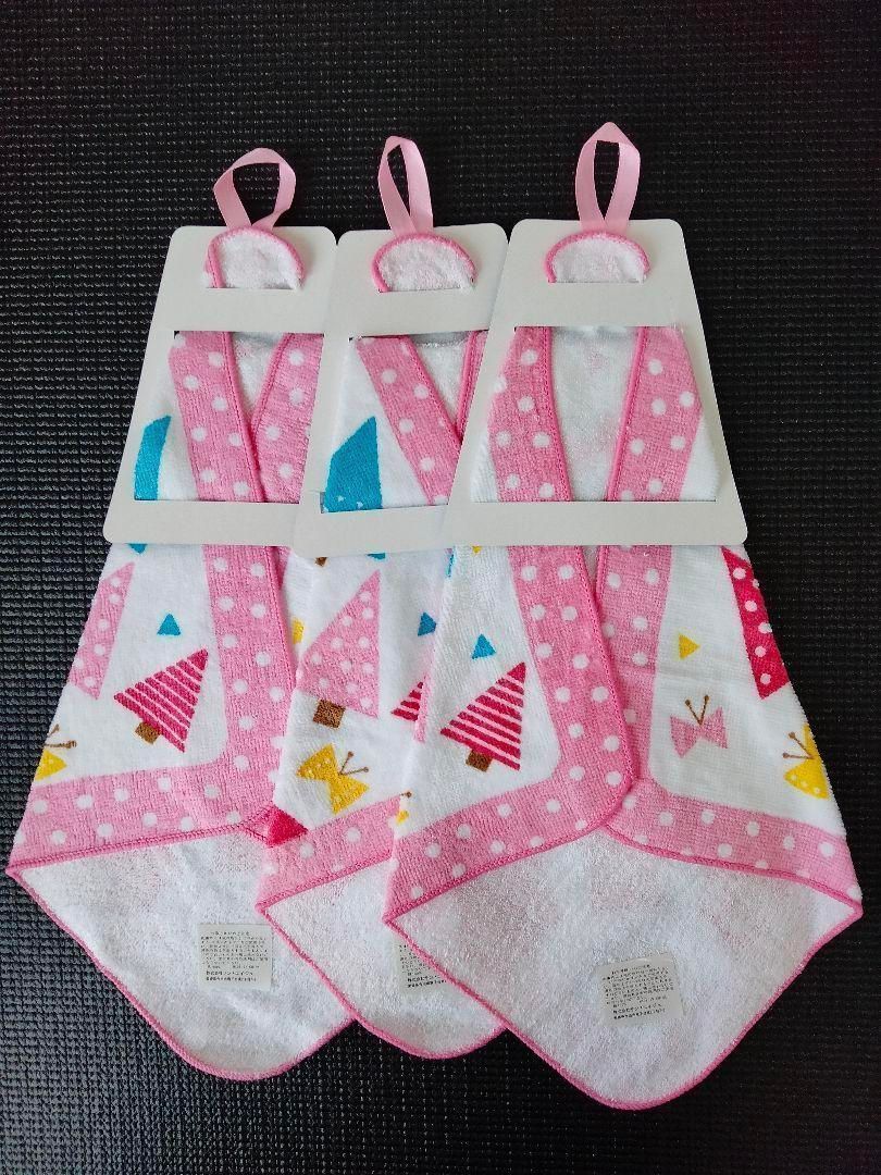 ループタオル 3枚 3枚セット 女の子 幼稚園 保育園 入園 アソート まとめ買い 白 ホワイト ピンク コットン 吸汗 薄手 柔軟性 速乾