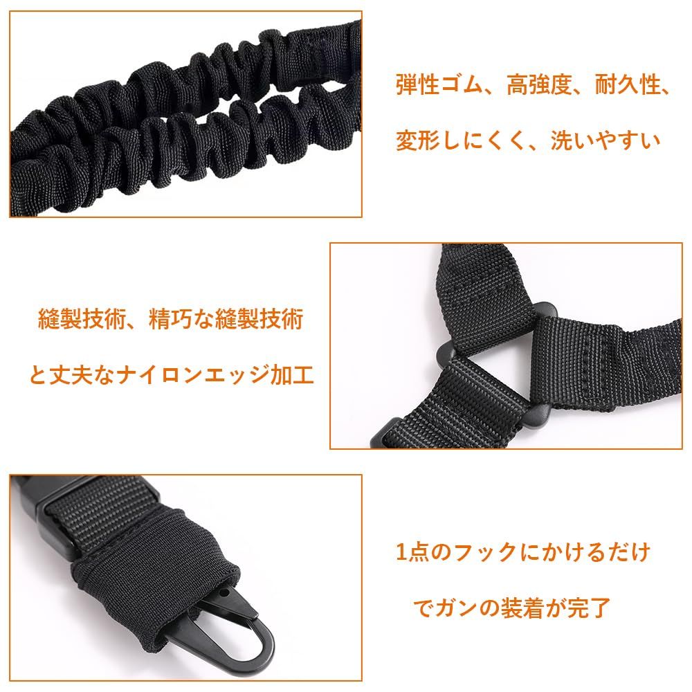 サバゲー スリング 1点支持 ライフル エアガン用スリング 簡単装着 両手フリー 弾性ゴム 軽量ナイロン 長さ調整