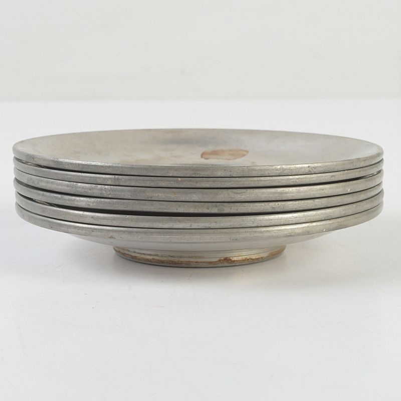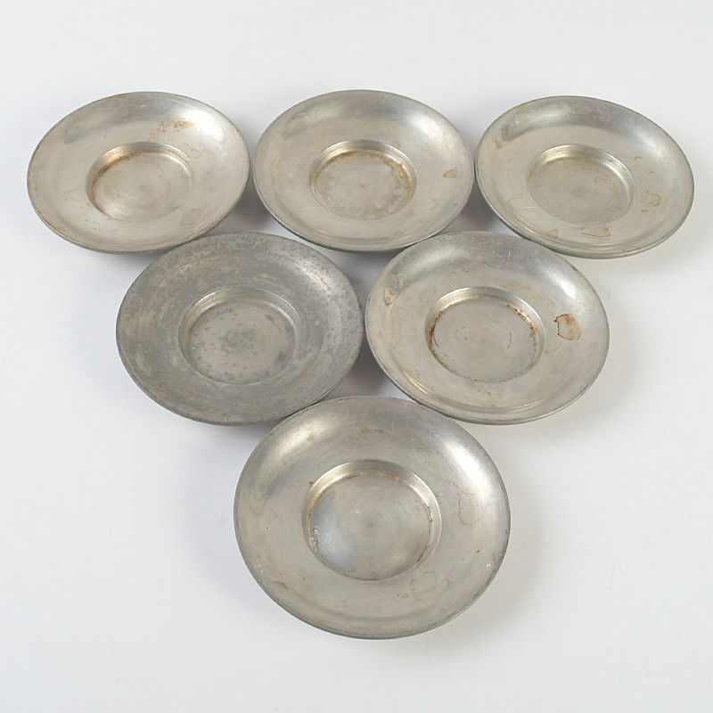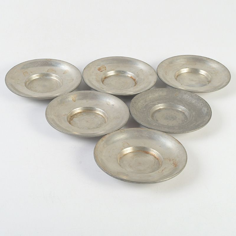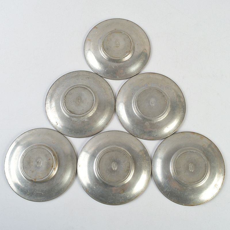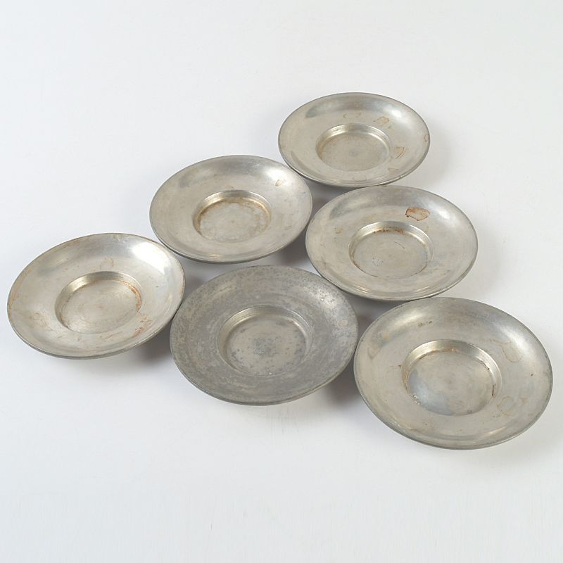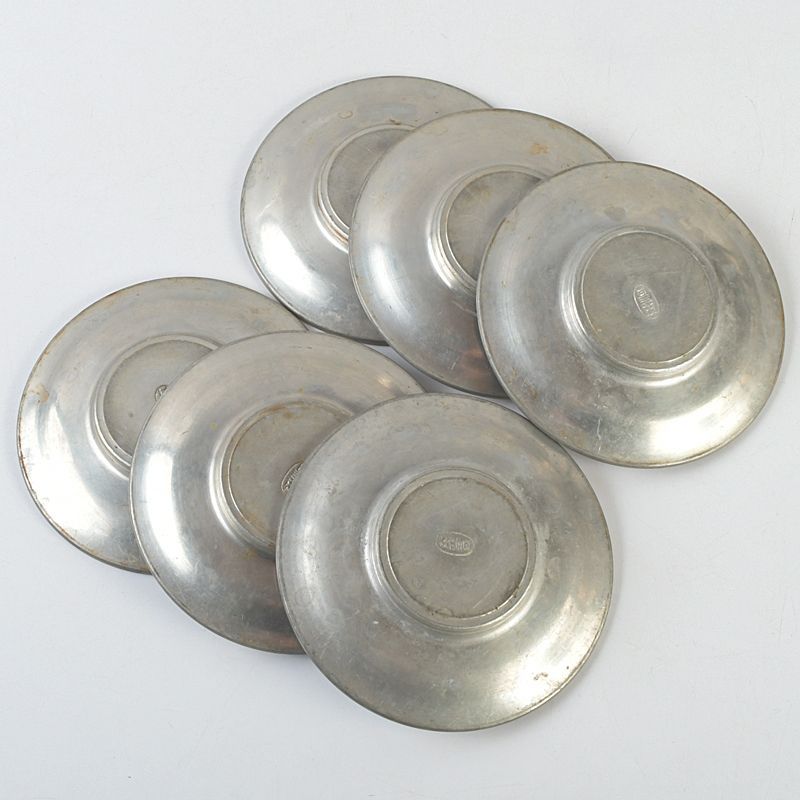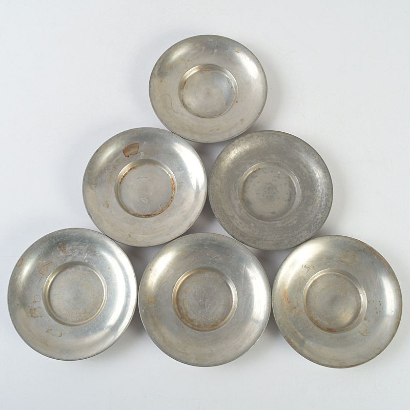 煎茶道具 古錫 英青堂造 円式 茶托 六客 V S287