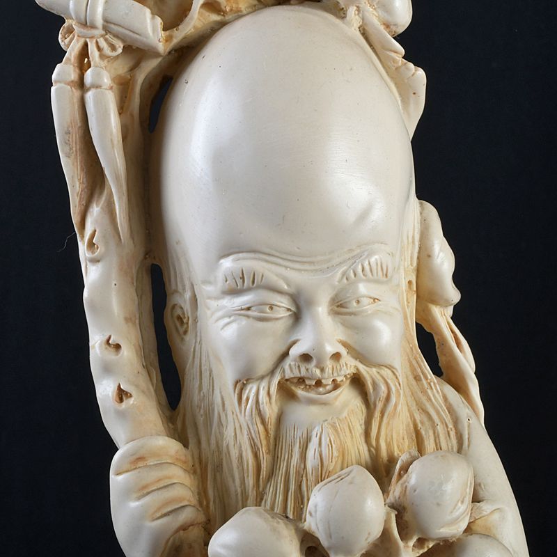 中国 練物彫刻 桃仙人像 置物 N S293
