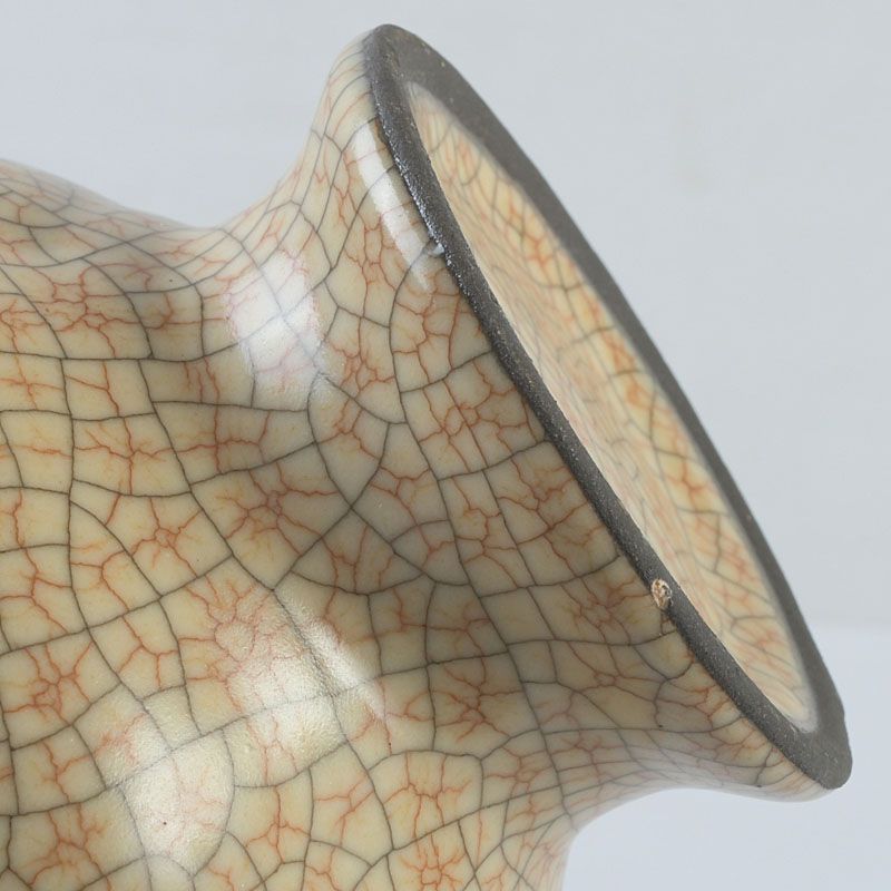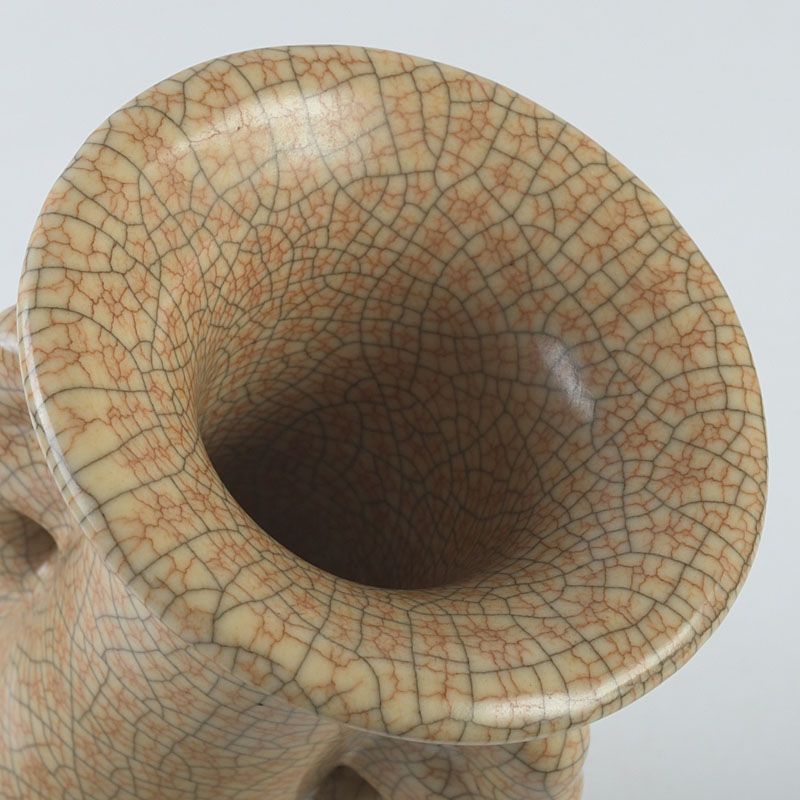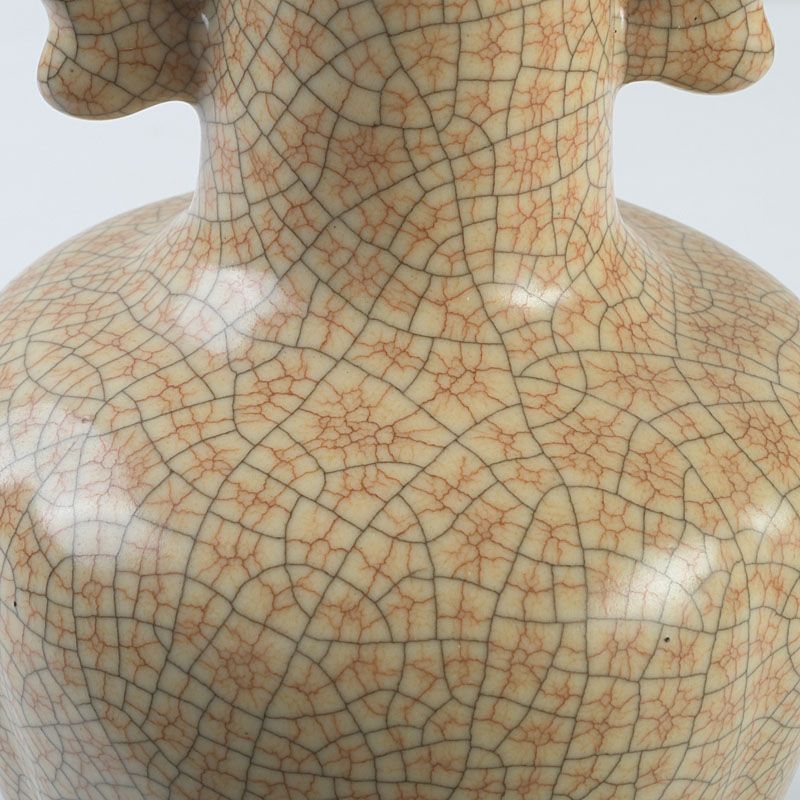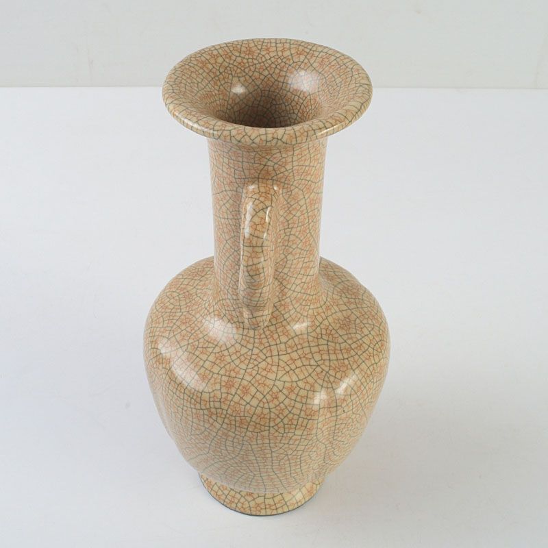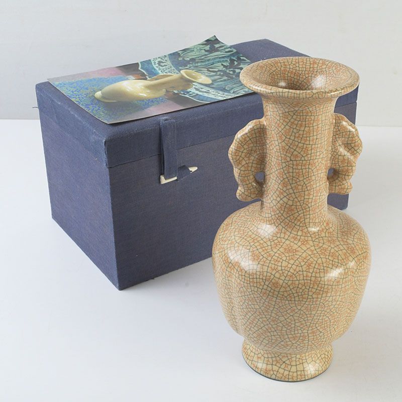 中国 南宋 哥窯氷裂文 双耳瓶 箱付 C S294