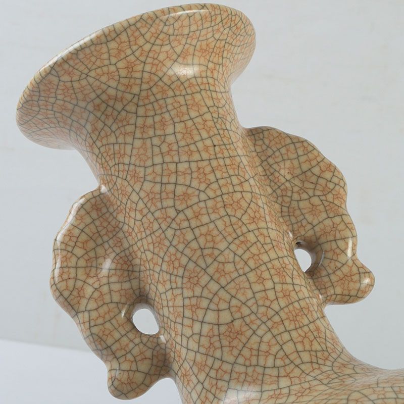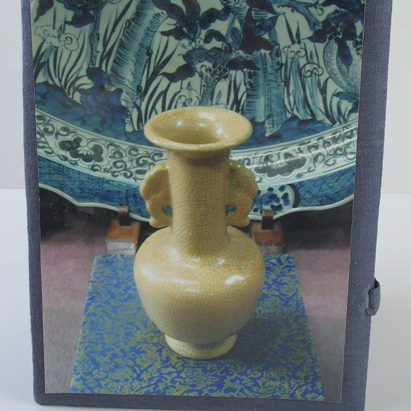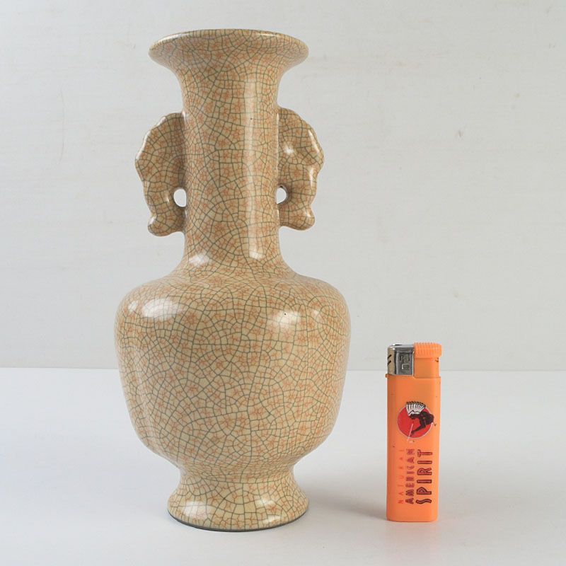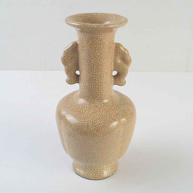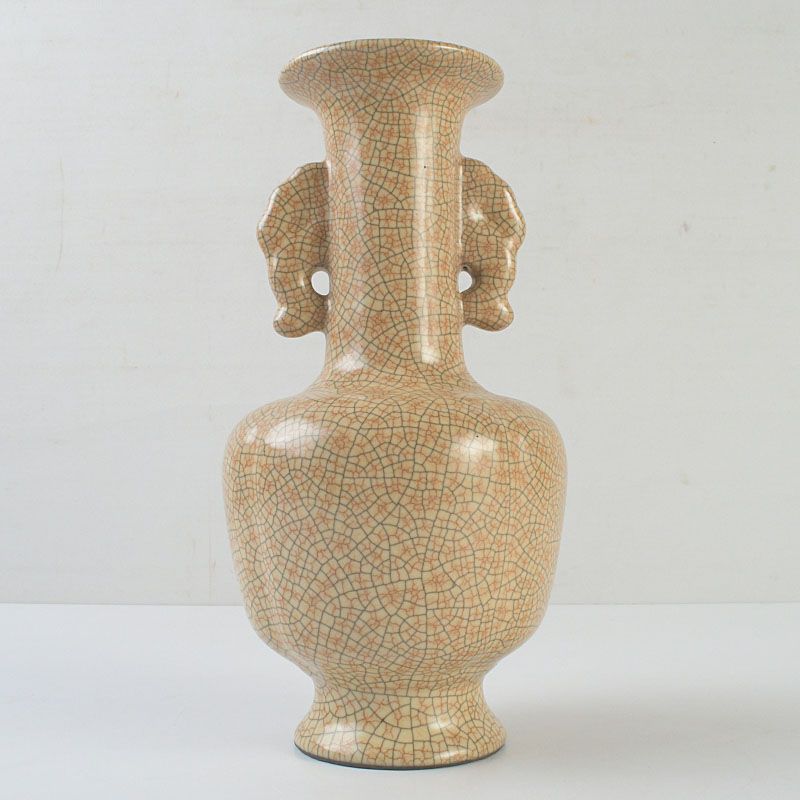 中国 南宋 哥窯氷裂文 双耳瓶 箱付 C S294