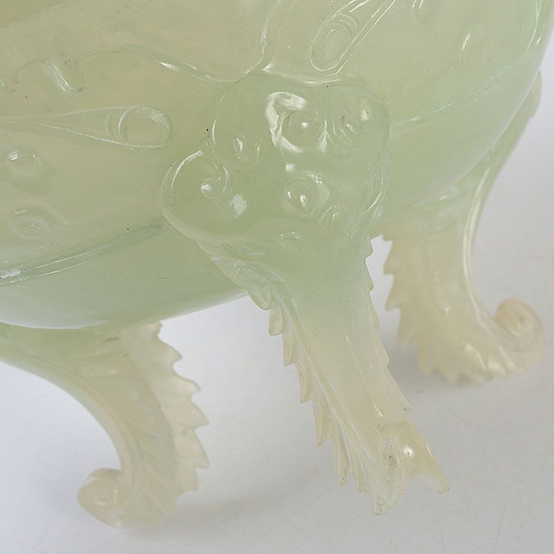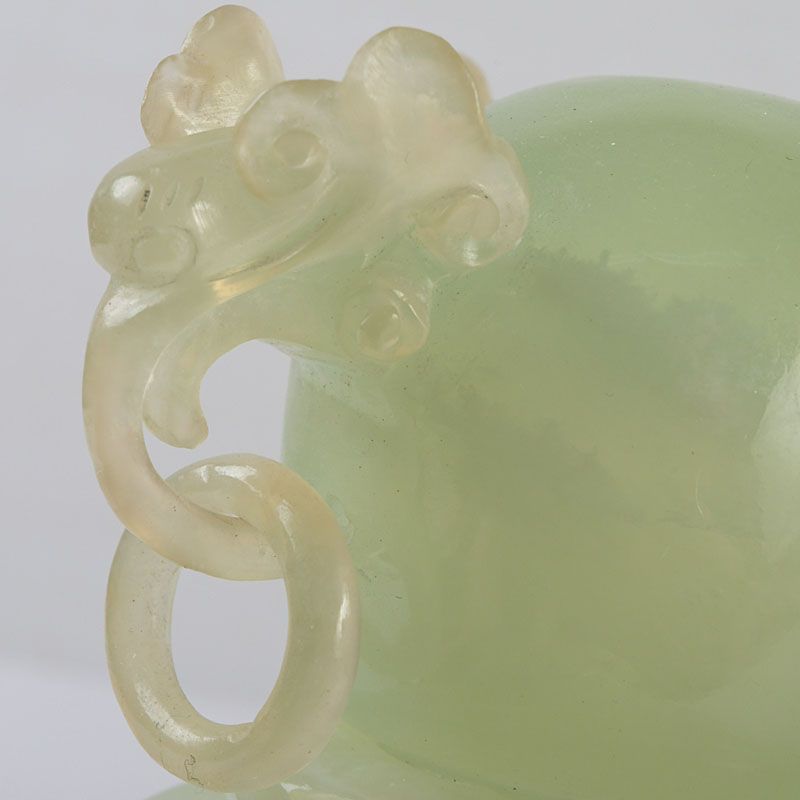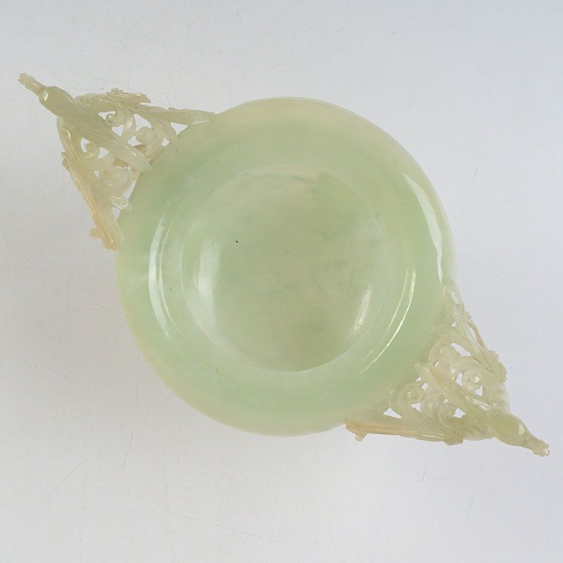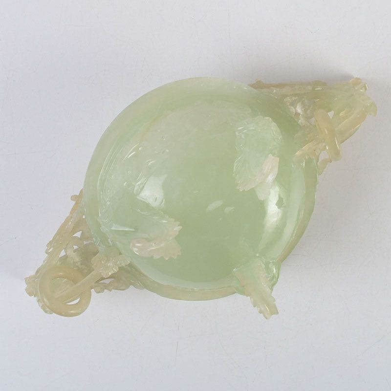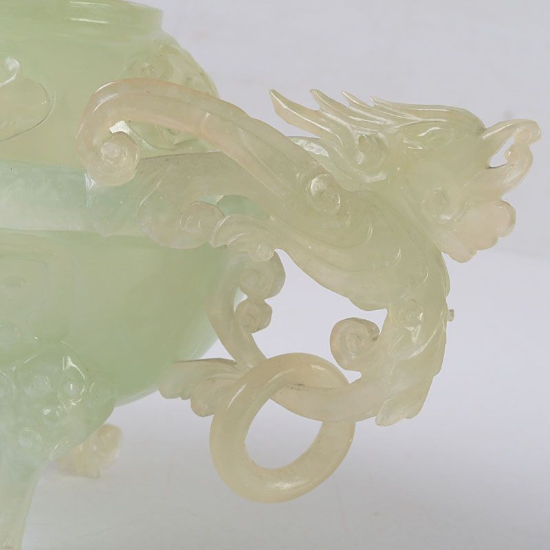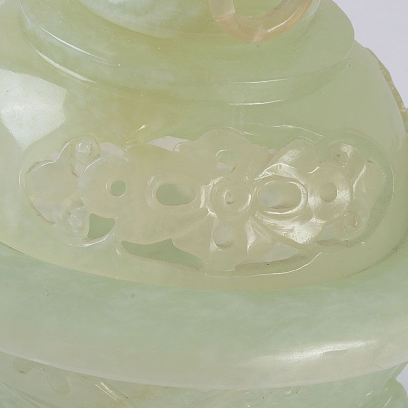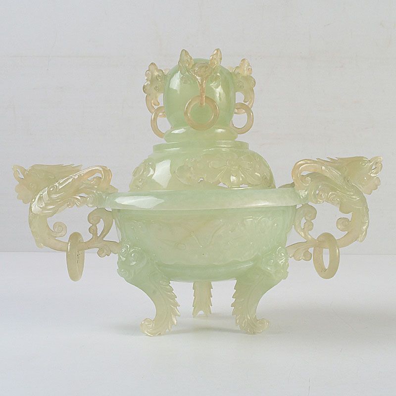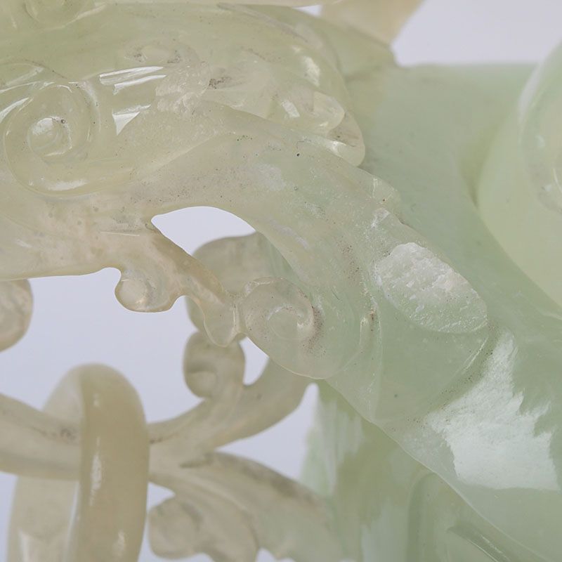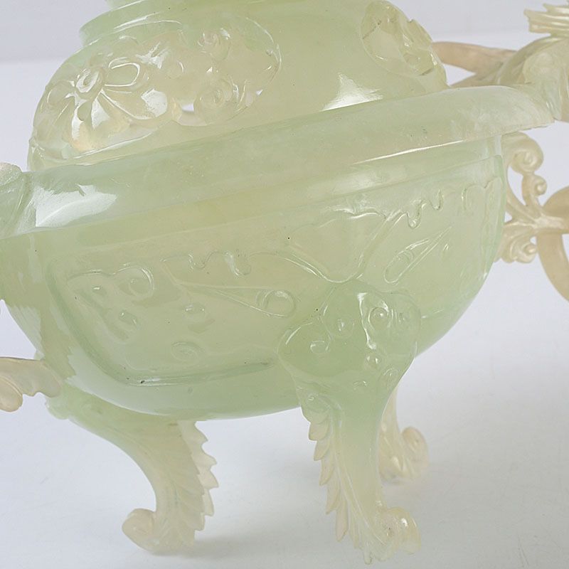 中国 玉石岫玉彫刻 透かし彫遊環 香炉 飾壷 V S300