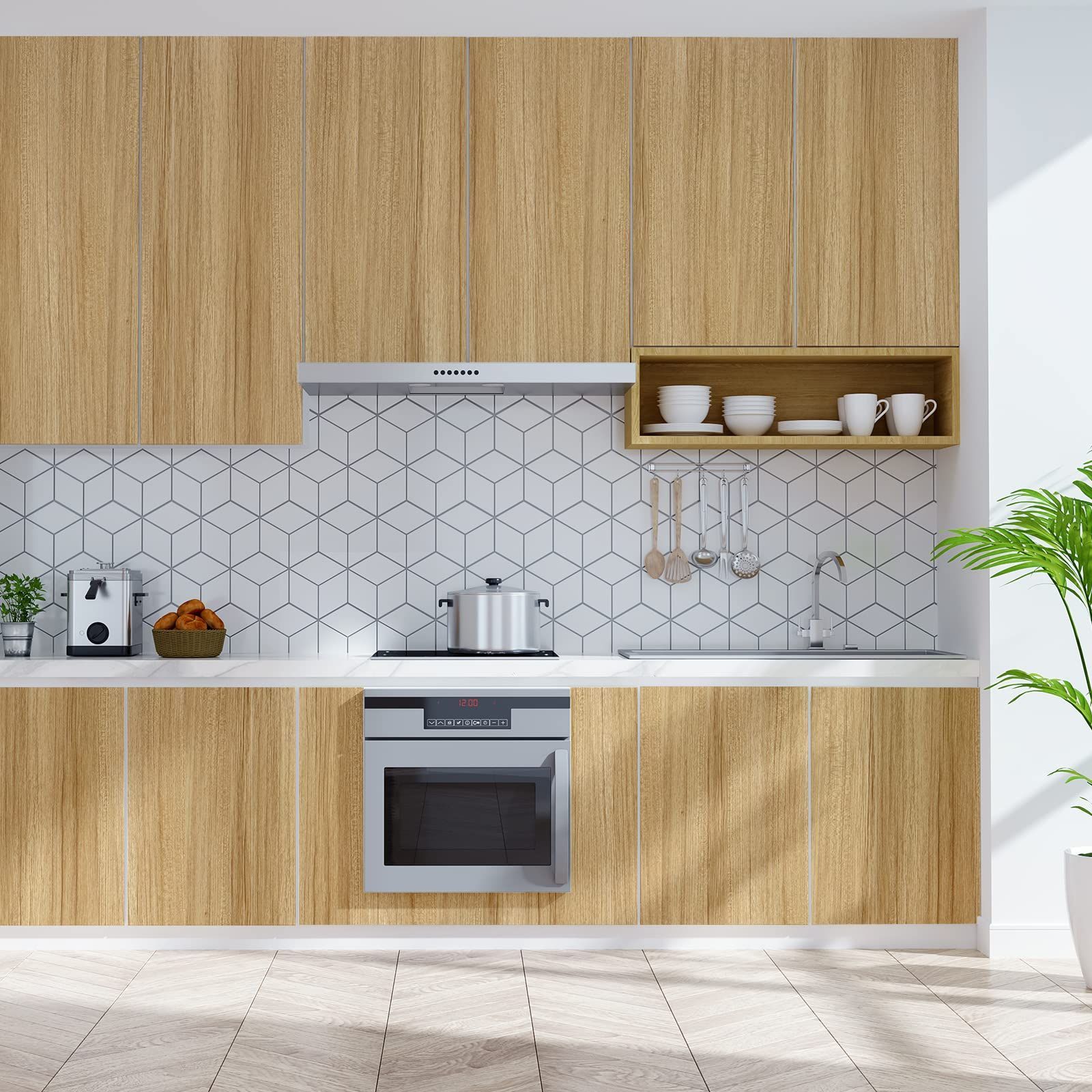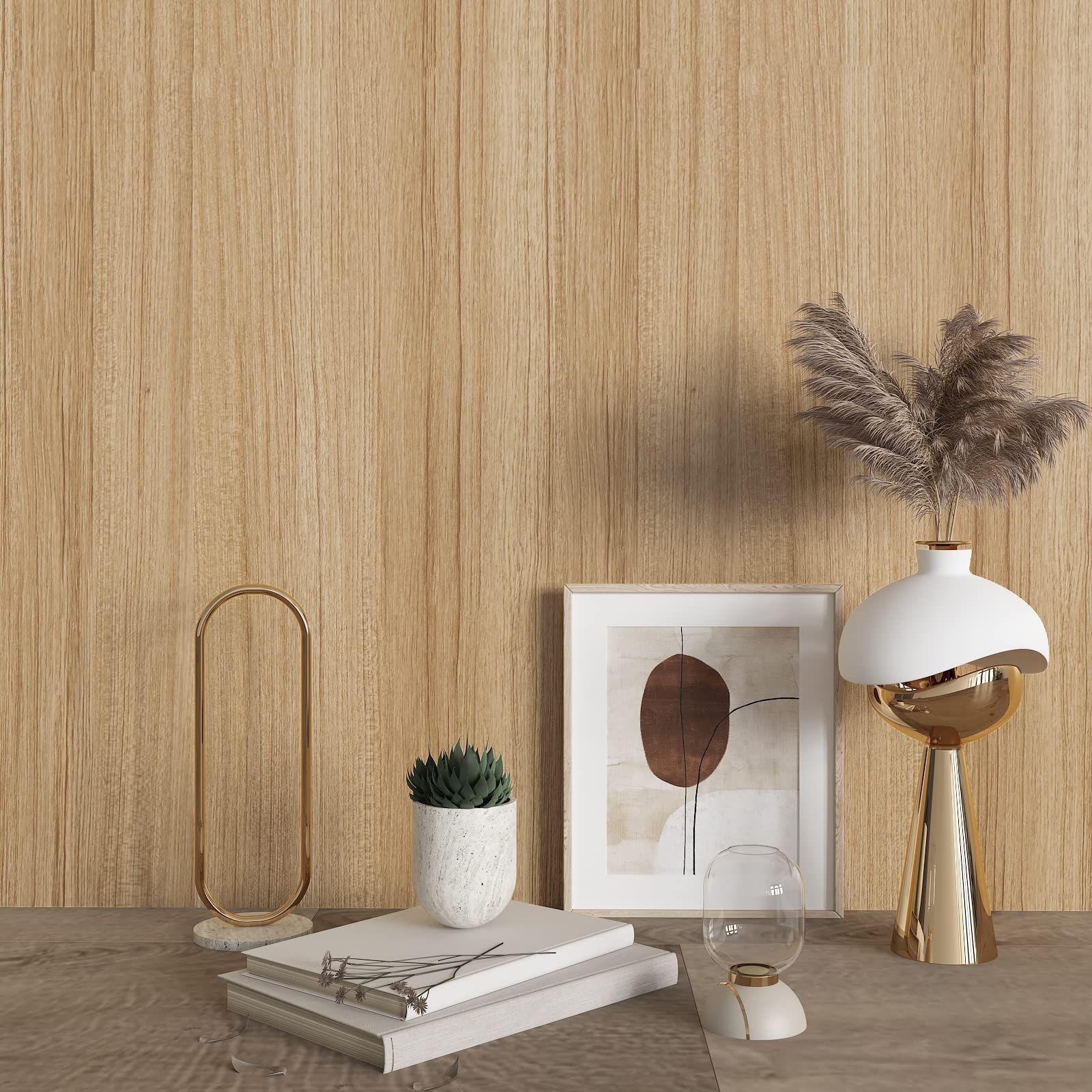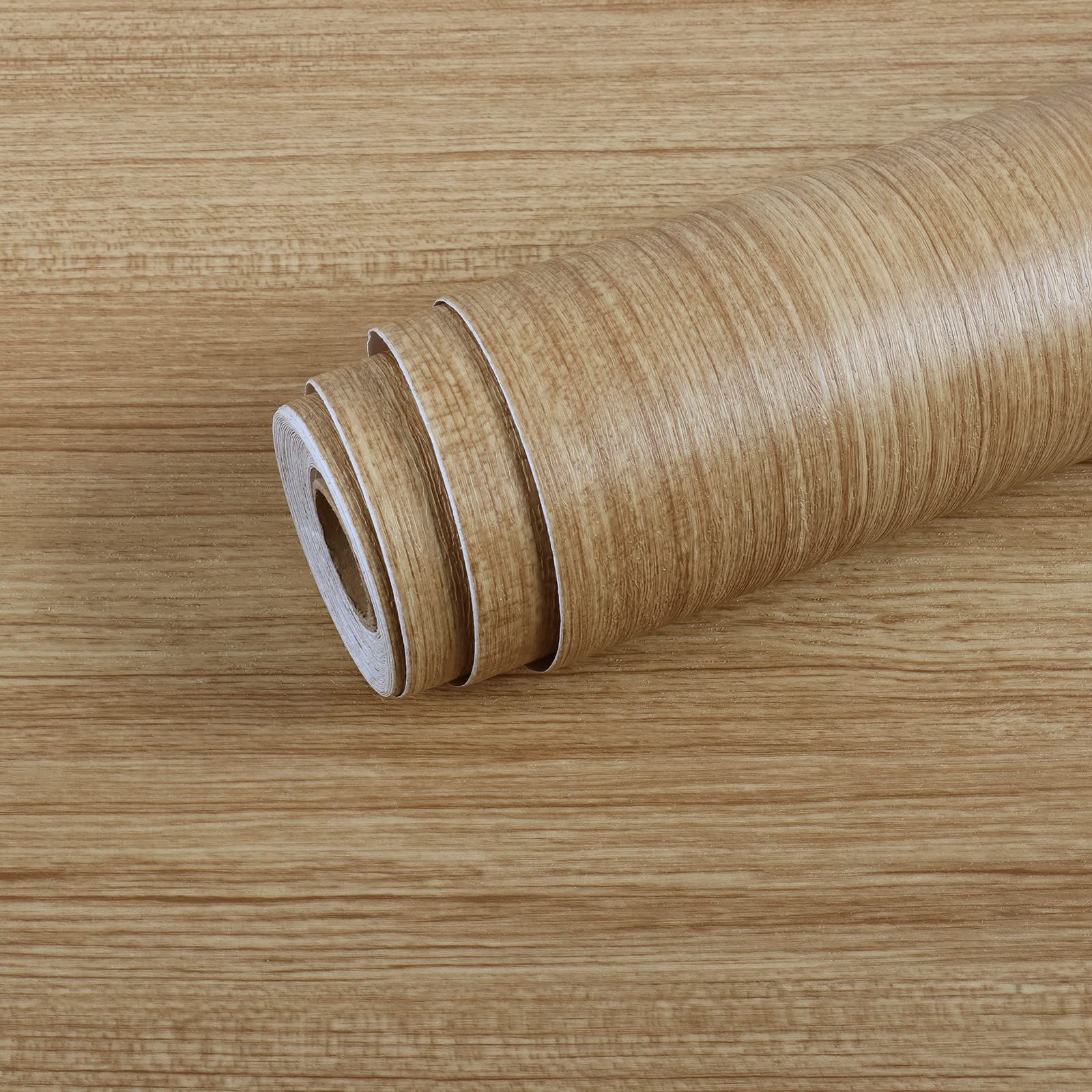 【素材とサイズ】べジューの木目調壁紙シートはビニール製で、無毒無臭で、環境にやさしい、幅45 cmx長さ600 cm、ロールあたり2.7㎡をカバーします
