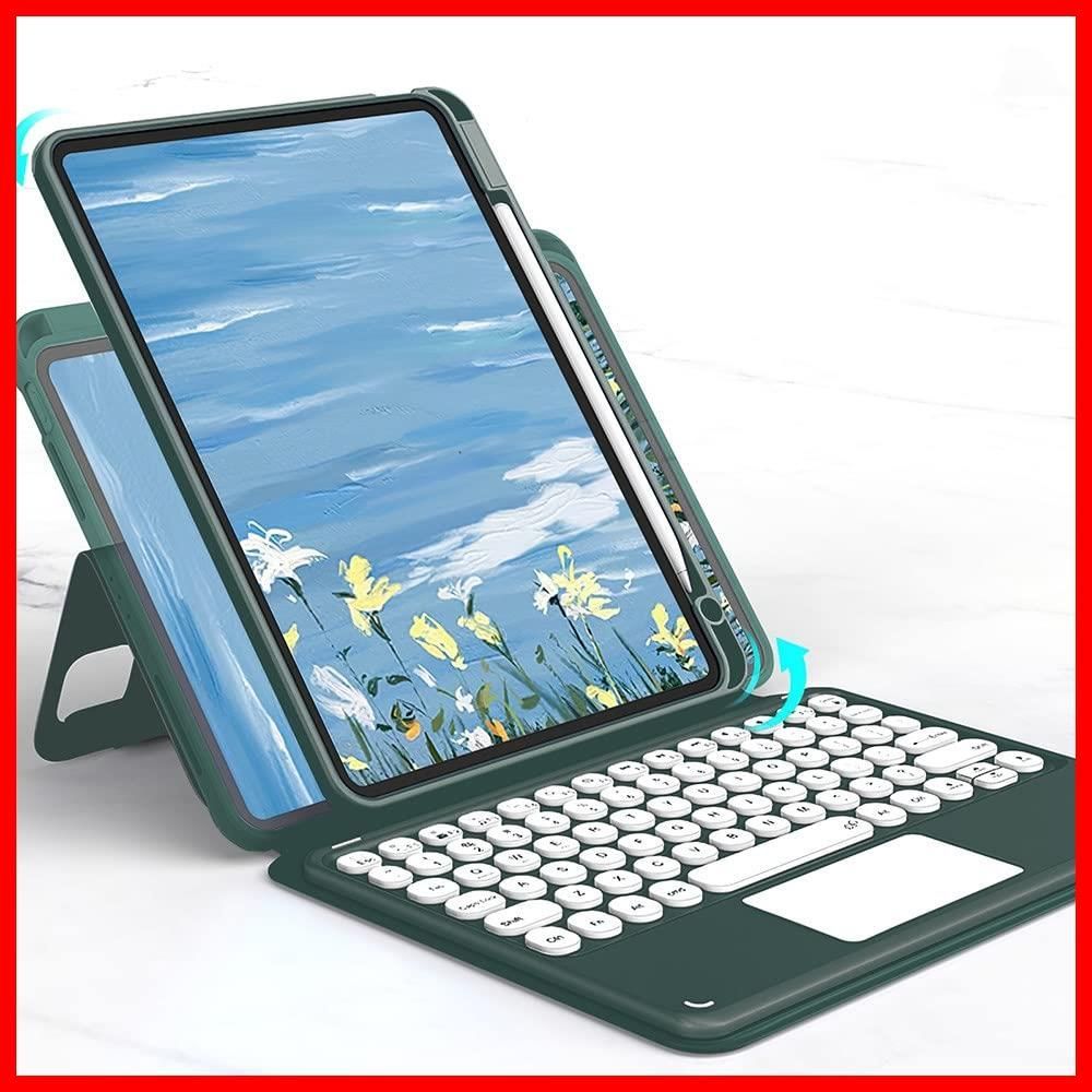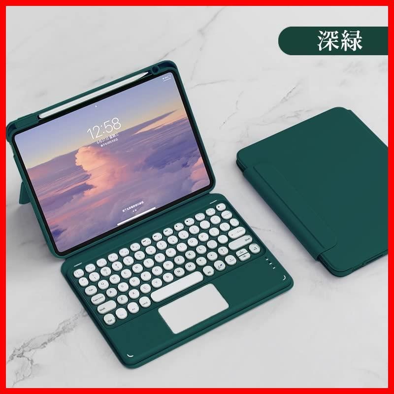磁気吸着 2022 iPad 第10世代 キーボード iPad A16 (第11世代 2025) キーボードケース 縦置き タッチパッド搭載 丸型キー 透明 クリア カバー 取り外し可能 Apple Pencil 収納 アイパッド10 分離式 キーボード付き マグネットケース深緑