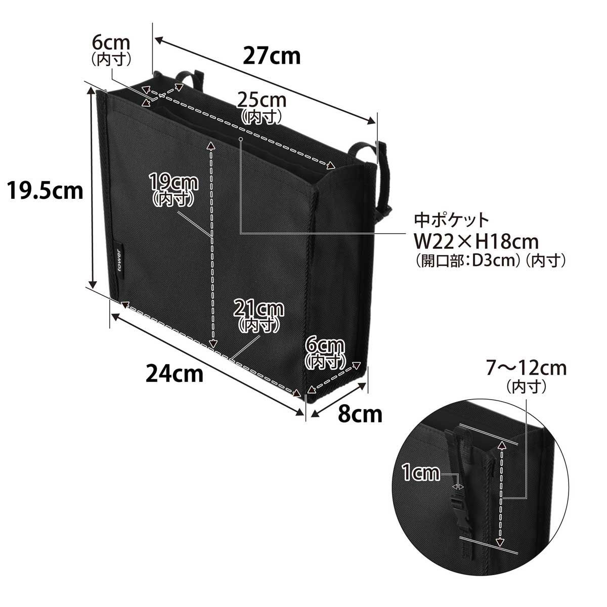 ・内寸サイズ:約W250xD60xH190mm(収納部)/約W220xH180mm(中ポケット 開口部D30mm)/約70-120mm(ループ部の長さ)