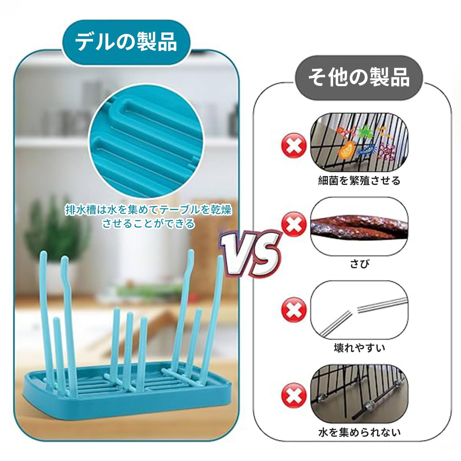 【親切な設計】角のない枝は、やわらかいシリコン乳首や、プラスチック製品なども傷つけずに水切りできます。