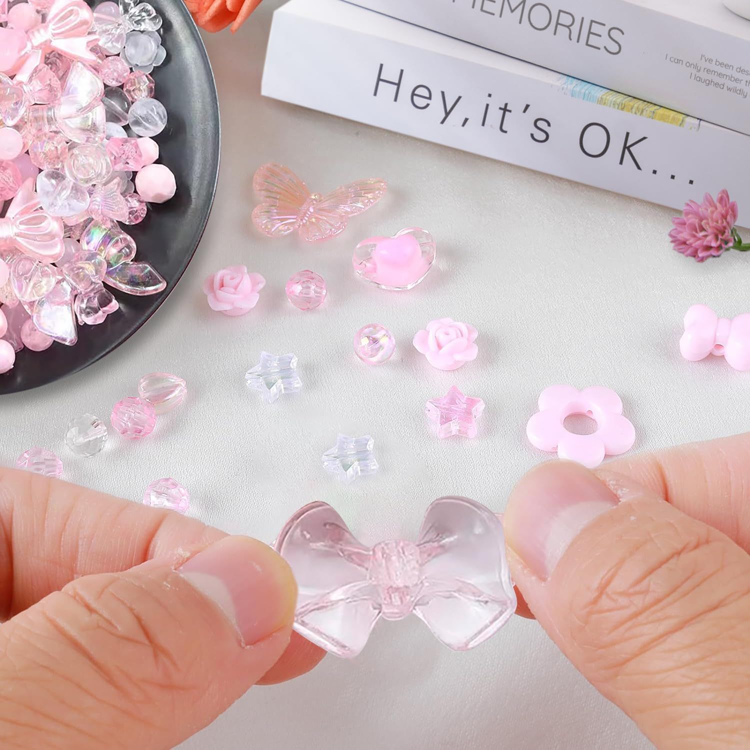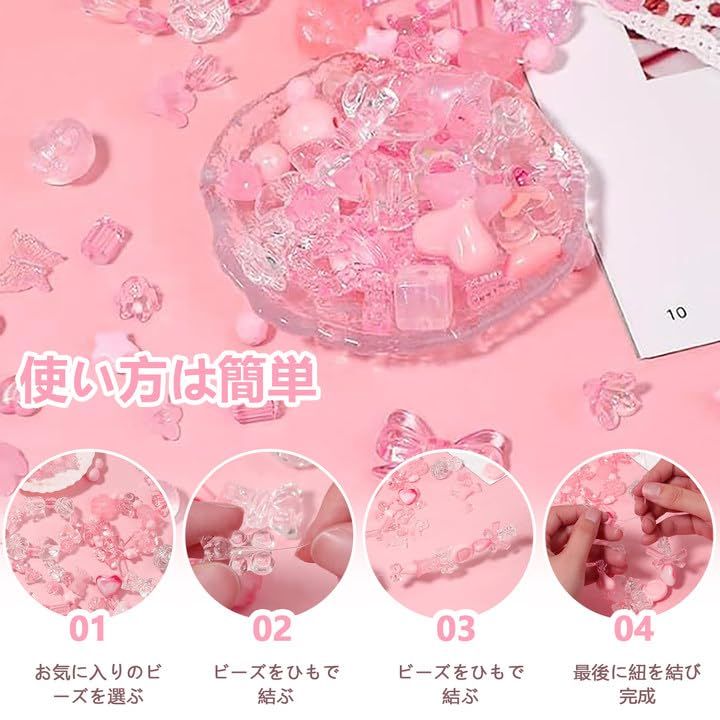 ビーズ ミックス アクリルビーズ 透かし【約100g】デコビーズ パーツ ハンドメイド 材料 初心者向け ネックレス 髪飾り スマホのストラップ ヘアゴム ハンドメイド 素材 装飾ボールアート用 (Pink)