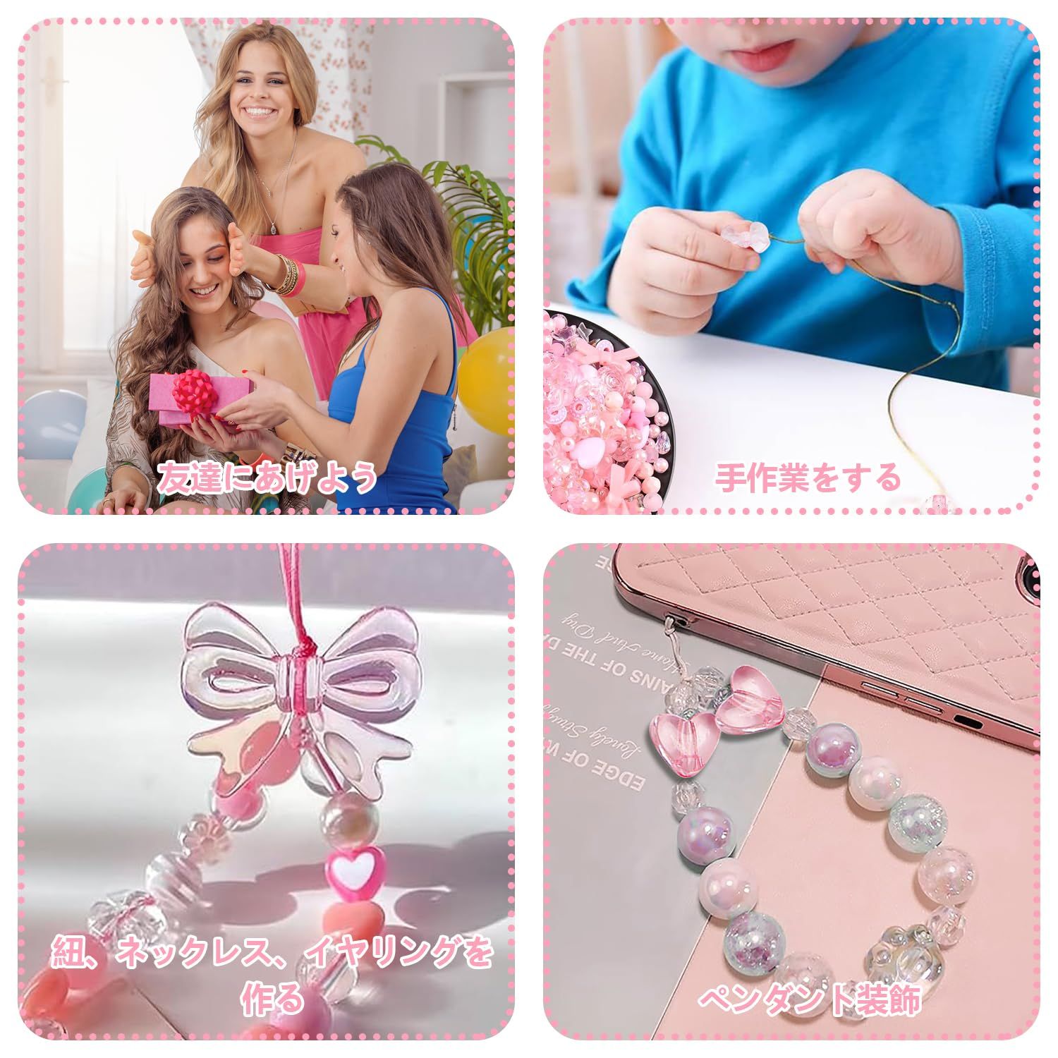 【適用範囲】イヤリング、ブレスレット、ペンダント、ネックレス、チャーム、携帯ストラップ、ヘアアクセサリー、ヘアゴム、ヘアクリップ、ブローチ、バッグチャーム、キーリング、アンクレット、DIYクラフトなどにお使いいただけます。
