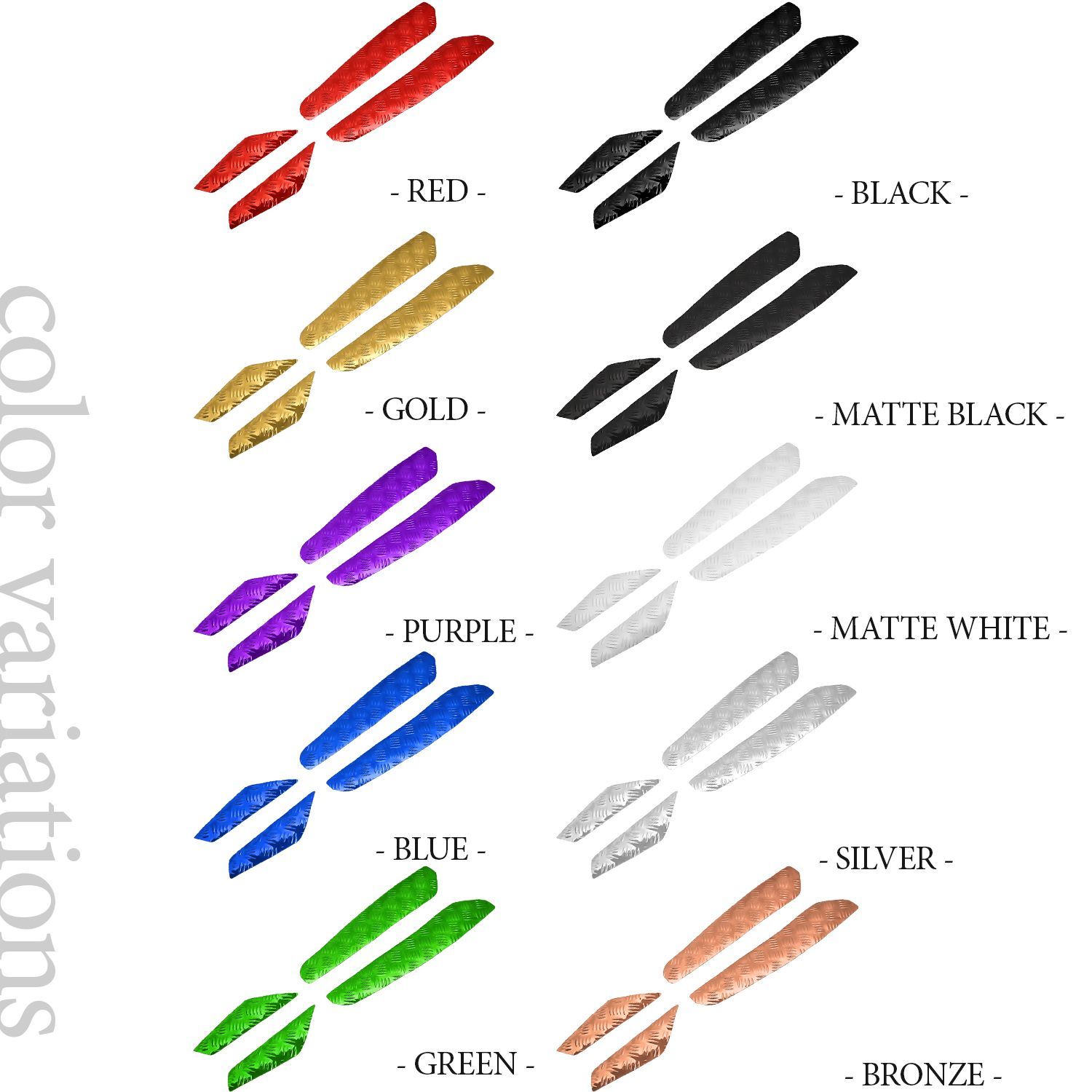 ■ブラック/ブルー/ゴールド/レッド/シルバー/グリーン/パープル/ブロンズ/マットホワイト/マットブラックの10色がございます。