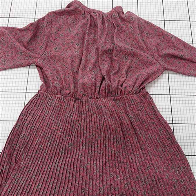色: インデックス index 花柄プリーツワンピース 長袖 ピンク系 Lサイズ レディース