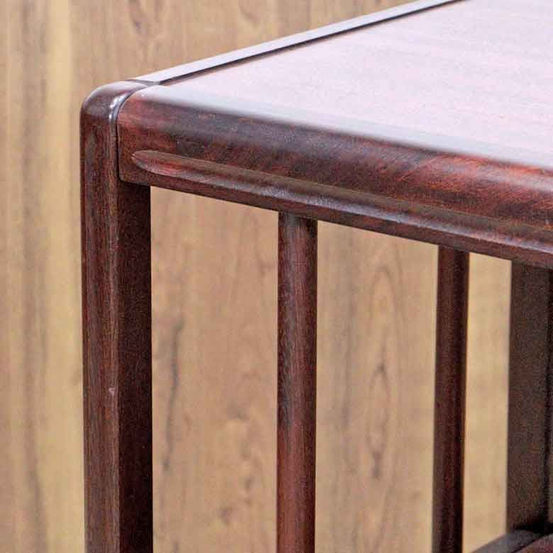 19世紀後半~20世紀初頭のマホガニーやオーク材が主流で、象嵌や彫刻などの装飾が施されたクラシカルなデザインが特徴的ですが、ミッドセンチュリー期に入ると伝統的な装飾は排除され、木目や素材の質感を活かしたシンプルなラインが主流になります。 本棚としてだけでなく、レコード(CD)ラックやディスプレイキャビネットとしても使える、多目的な収納家具としてデザインされることがあります。