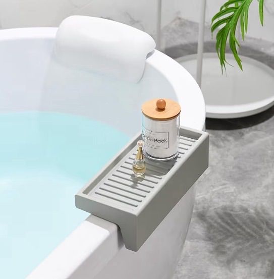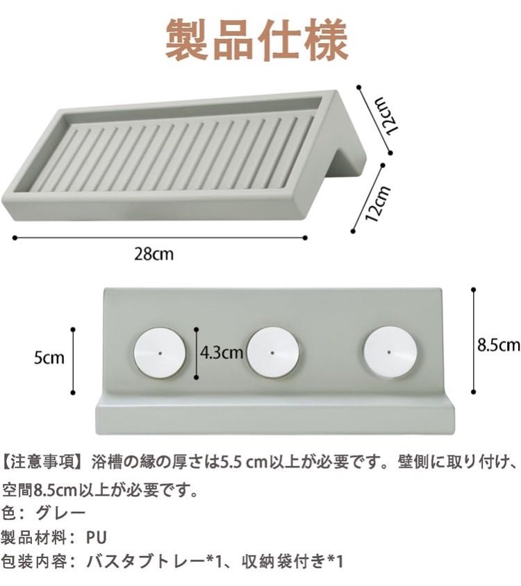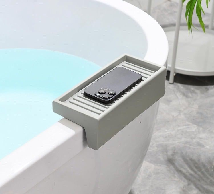バスタブトレー 浴室用ラック 浴室トレイ 浴室トレー バス用トレイ バスルームトレイ 吸盤付き 小物トレ 浴室棚 バストレー スマホスタンド バスラック バスルーム収納 (グレー)