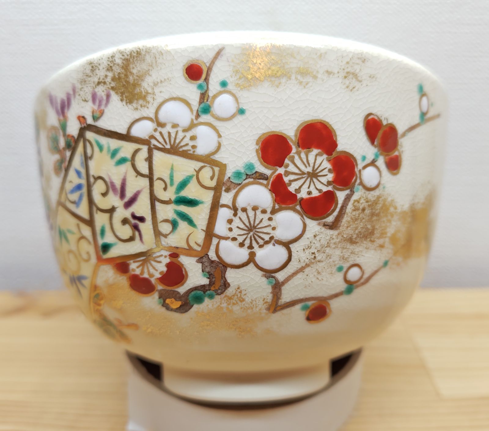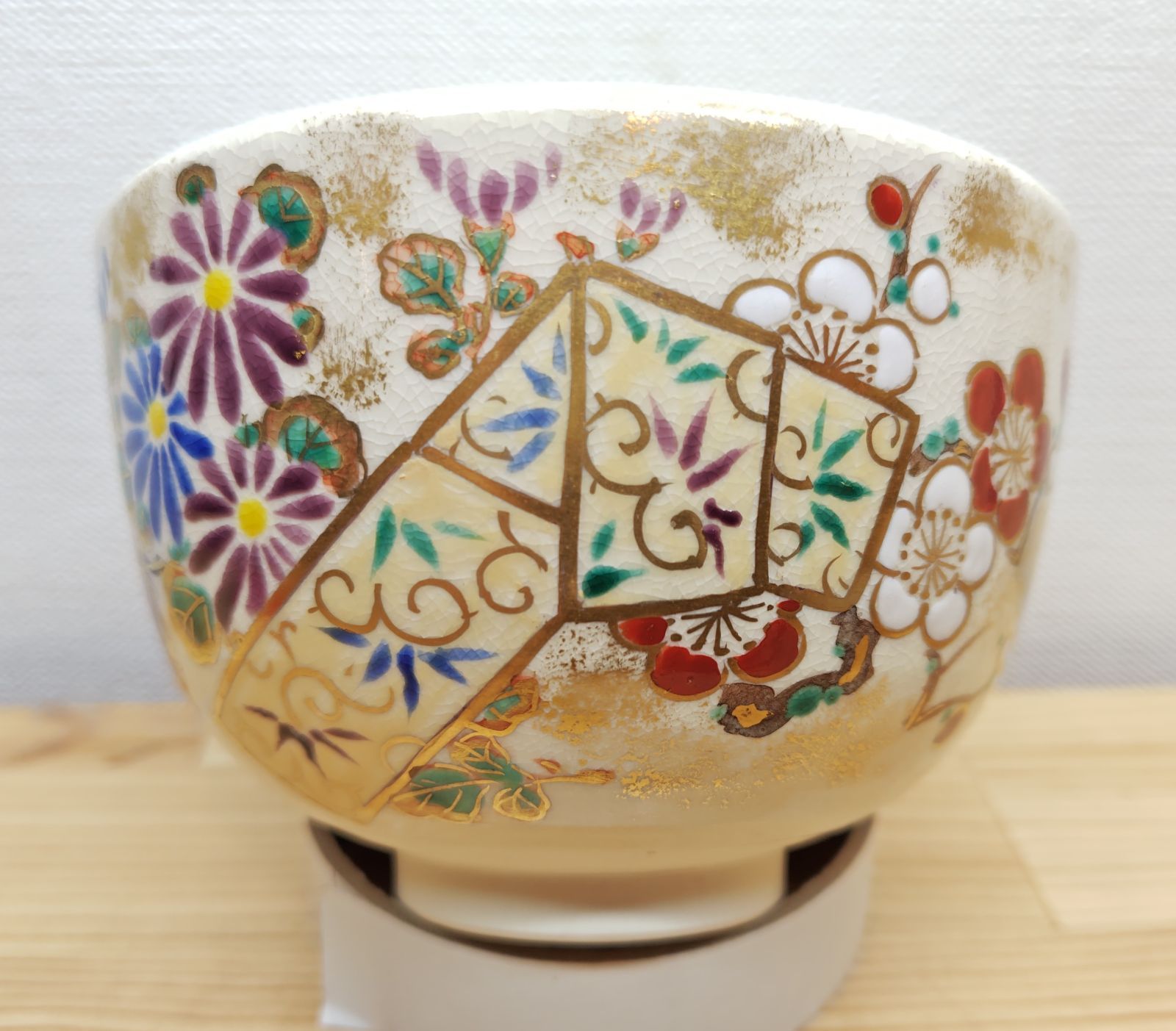 なかなかオメデタイ絵付けのお茶碗で、かつ、四季草花の絵付けですので、季節を問わず年中お使い頂けます。