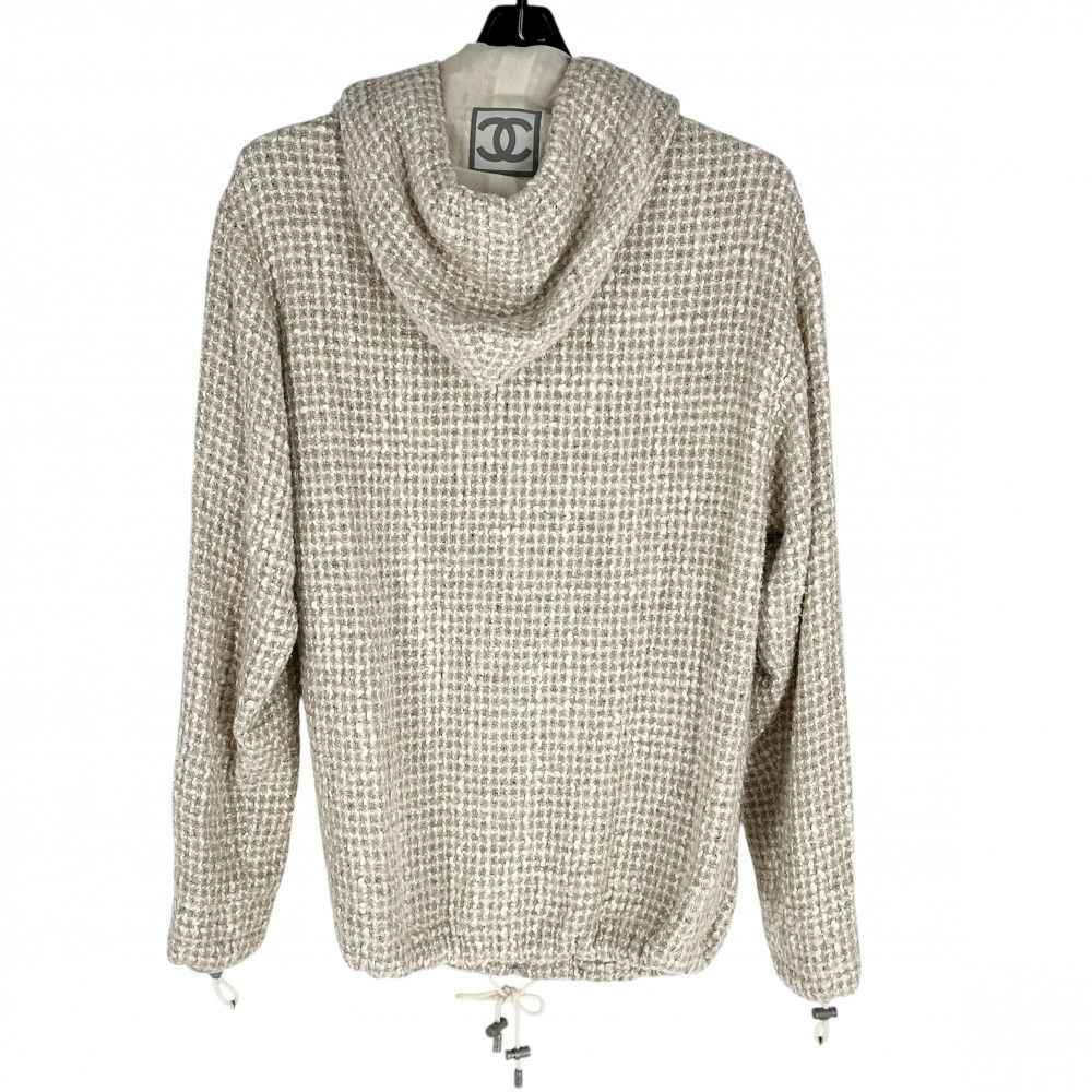 【商品名】CHANEL シャネル パーカー ツイード ココマーク アパレル 服 アウター フード付き シルク レーヨン ナイロン ベージュ シルバー レディース【中古品】