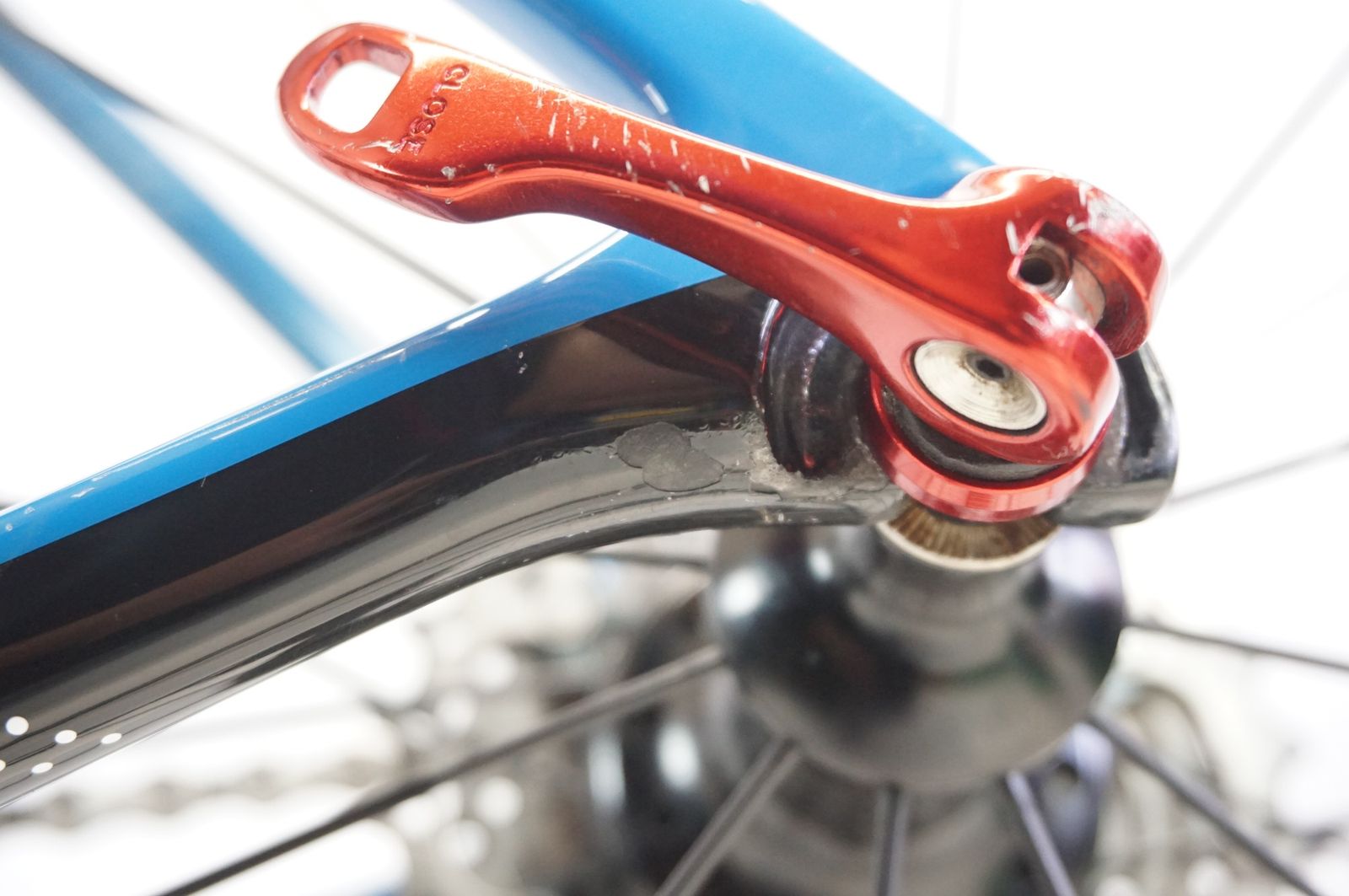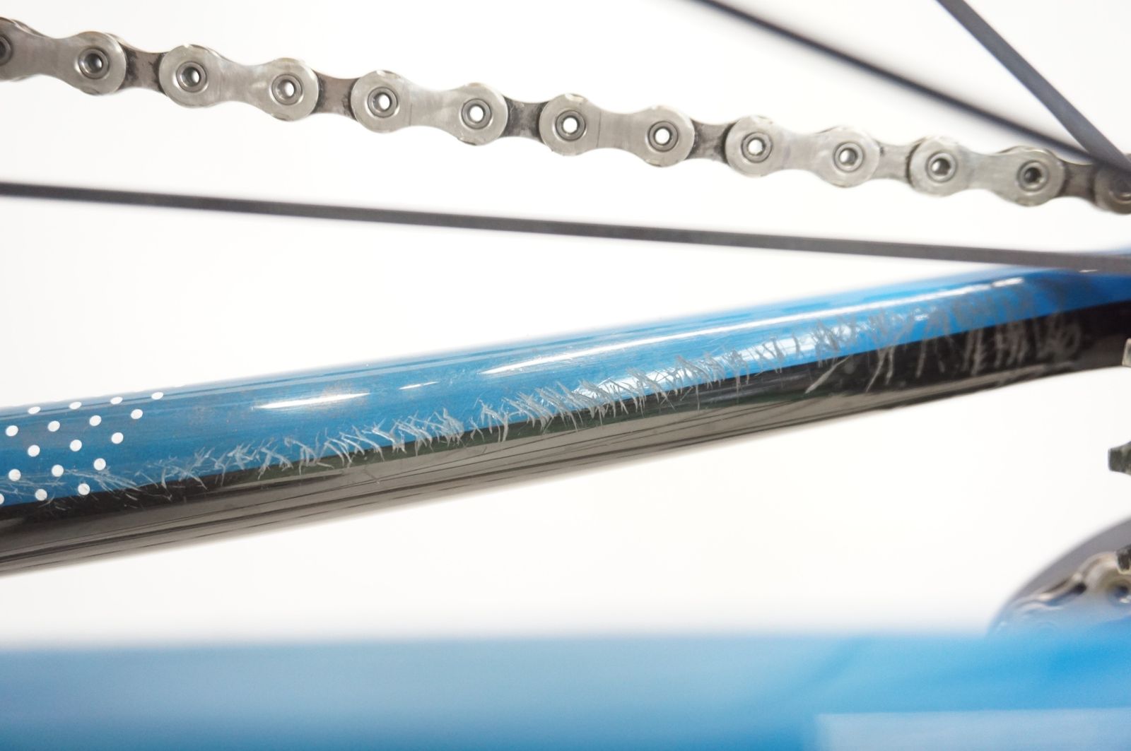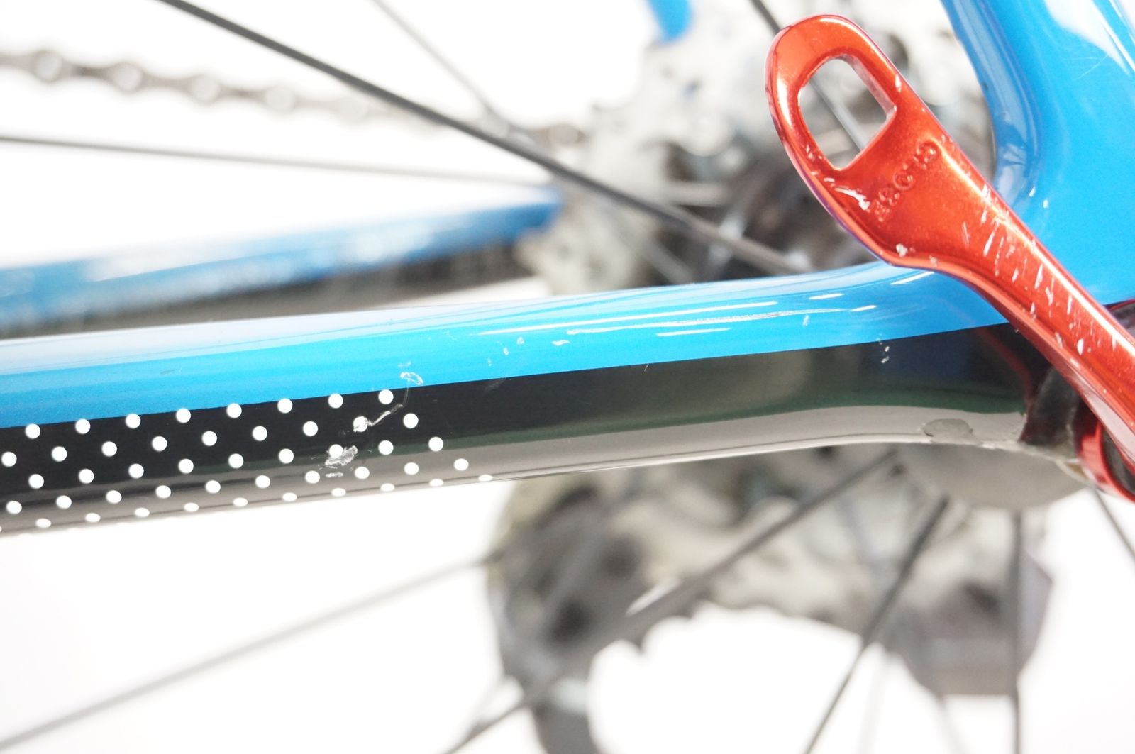リアエンドやチェーンステー内側に傷や塗装がけがみられます。